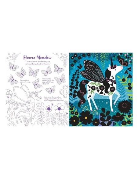 - Every scratch-able page is accompanied by a page of unicorn-themed colouring and picture puzzles for even more activity fun.