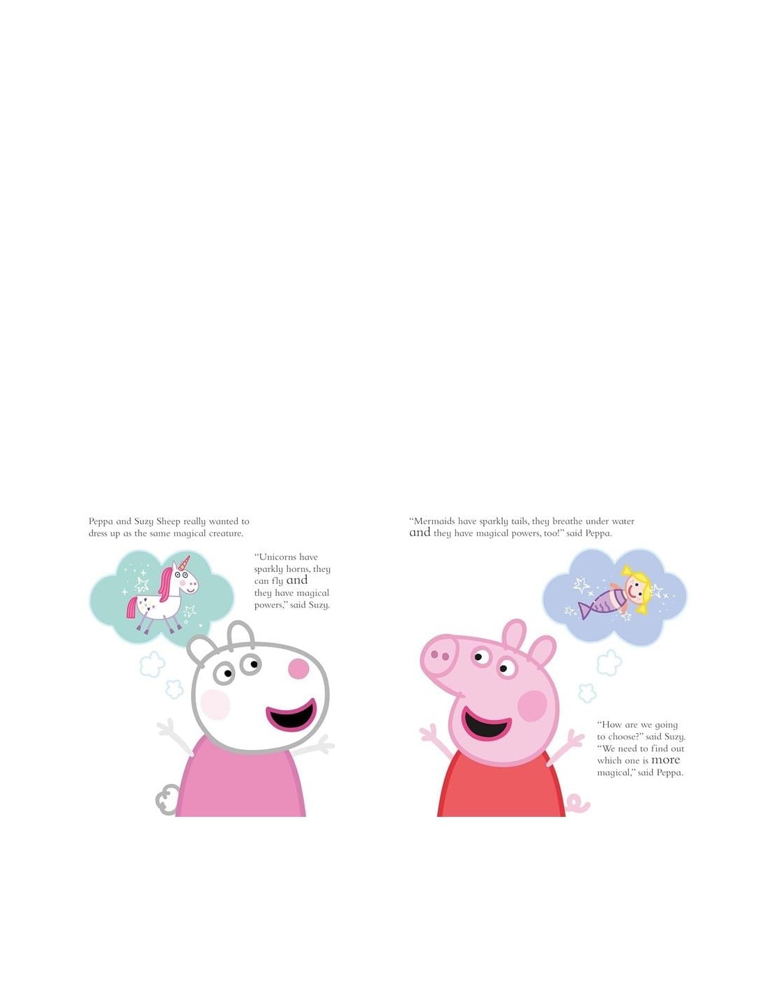Peppa ve Suzy, Penny’nin kostüm partisinde aynı sihirli yaratık gibi giyinmek istiyor! Suzy, unicorn olmayı önerirken Peppa mermaid olmayı düşünüyor. Peki ikisi ne olmaya karar verecek?