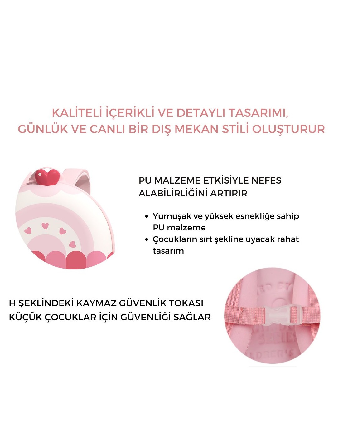 Bu sırt çantası, özellikle okul öncesi veya anaokulu çocukları için tasarlanmıştır. Eşsiz ve etkileyici 3D yuvarlak tasarımı, çocuğunuzun hayal dünyasını gerçeğe dönüştürmek ve dikkat çekmek için tasarlanmıştır. Çocuklar için mükemmel ve göz alıcı bir sırt çantası olarak öne çıkar. Sırt çantasının temizlenmesi kolaydır, böylece çocuğunuzun çantasını temiz tutmanız daha kolay olabilir. Yumuşak, ayarlanabilir ve nefes alabilen omuz askıları sayesinde çocuğunuz rahatça taşıyabilir. Kaymaz kayış ve H tokası, çantanın düşmesini engelleyerek çocuğunuzun güvenliğini sağlar. Üst sap, çantanın taşınmasına yardımcı olur ve taşıma sırasında kolaylık sağlar. Çocuğunuz için rahat, güvenli ve eğlenceli bir taşıma deneyimi sunan özel bir ürün gibi görünüyor.