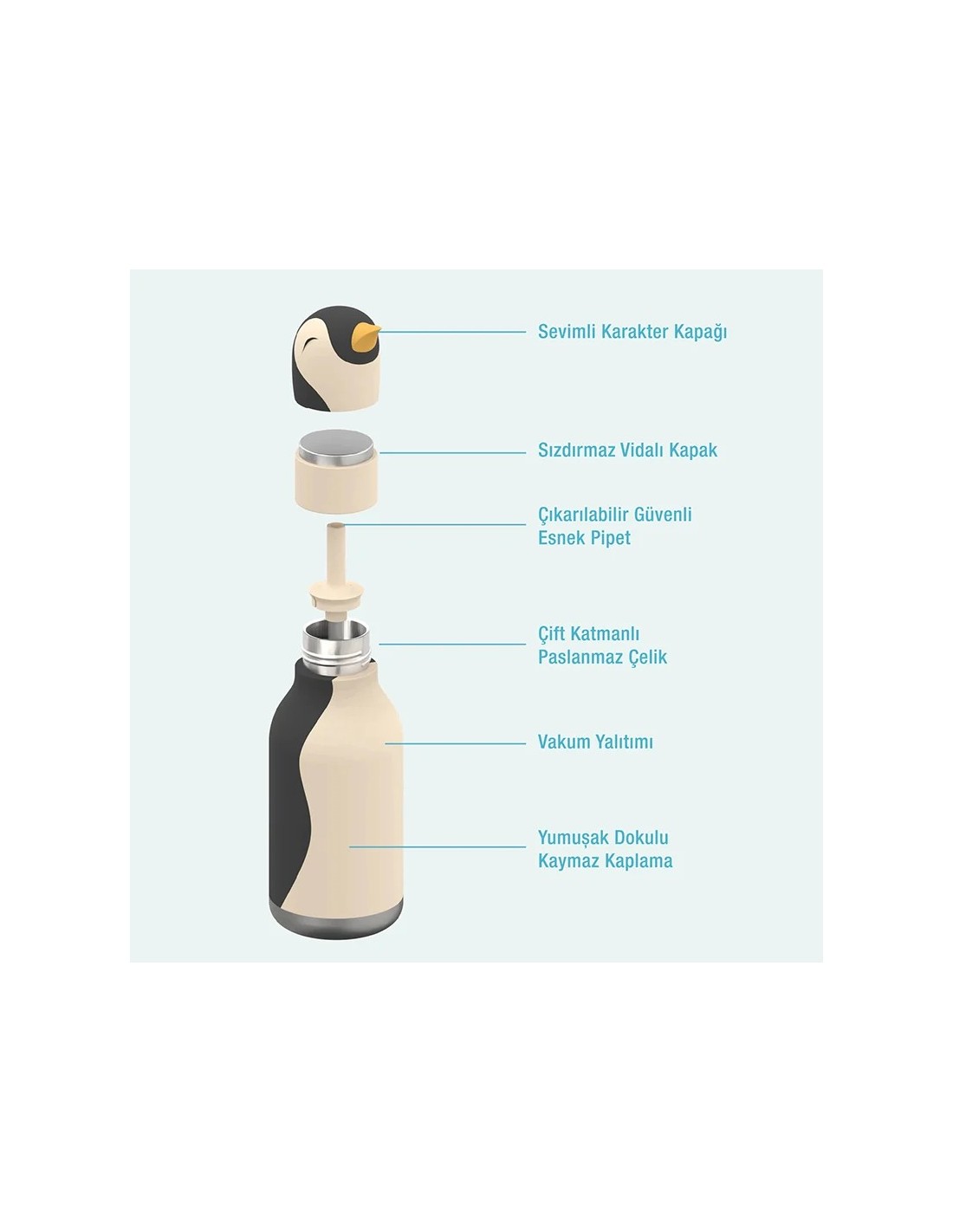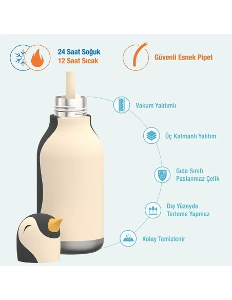 Karşı Konulmaz Derecede Sevimli ve Çevre Dostu: Sevimli Bestie Şişemiz tekrar kullanılabilir ve çevre dostudur! Çocukları daha çevre dostu olmaya ve plastik şişelerden kurtulmaya teşvik eder. Güvenli bir şekilde yerine oturan esnek, silikon, çıkarılabilir pipeti sayesinde içmeyi kolay ve eğlenceli hale getirir. Çıkarılabilir parçaları sayesinde kolayca temizlenebilir ve derinlemesine yıkanabilir. Ayrıca, şişenin ergonomik şekli küçük ellerin bile kolayca tutabileceği şekilde tasarlanmıştır.