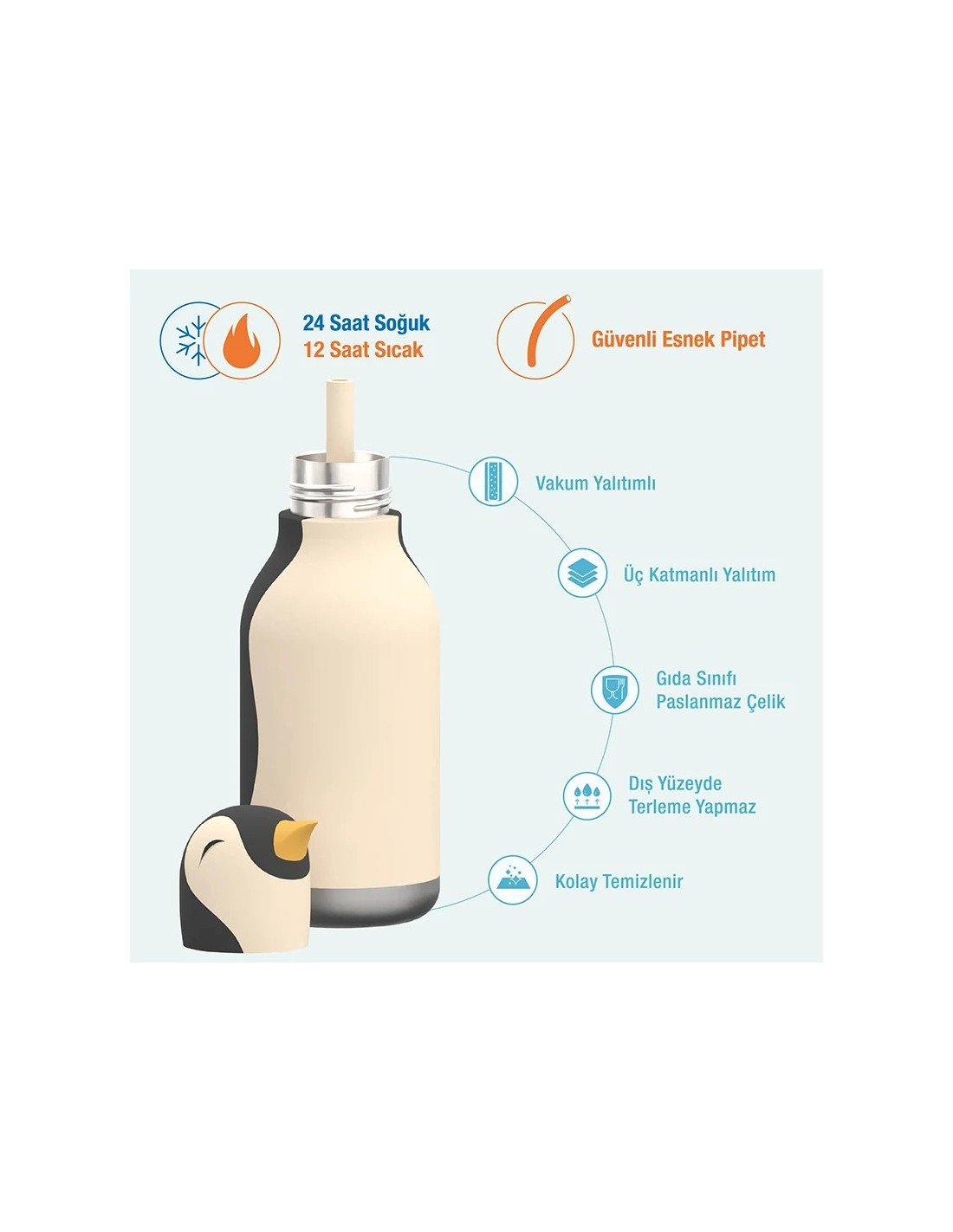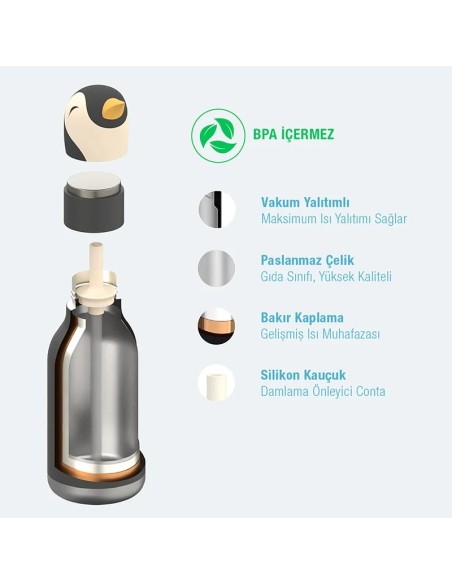 Silikon karakter başlığına sahip bu sevimli, yalıtımlı su şişesi, su içmeyi eğlenceli ve keyifli hale getiriyor.