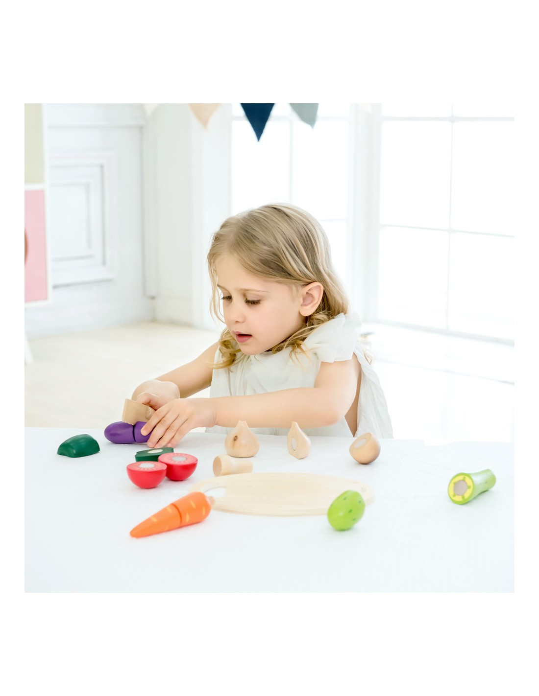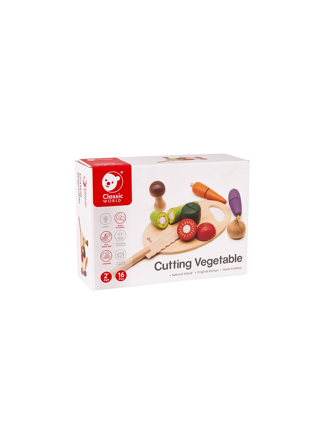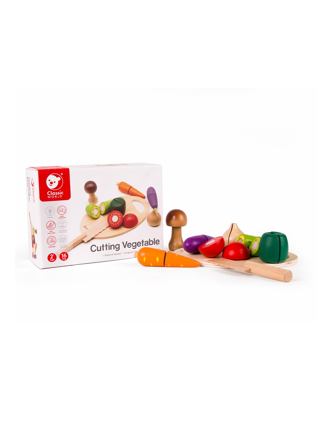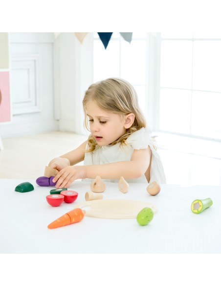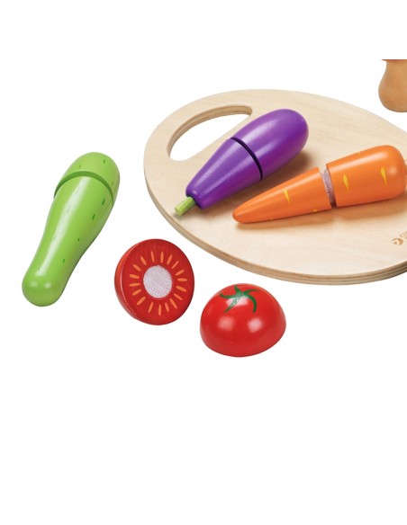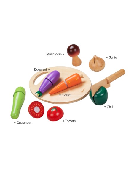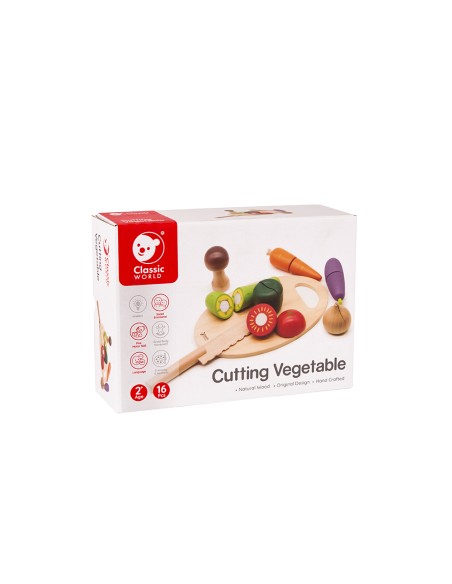 Bu Classic World oyuncağı aynı zamanda bebeğinizin sebzeleri tanımasını, renkleri öğrenmesini ve kaliteli vakit geçirmesimi sağlamak için üretilmiştir. Bebeğiniz sizinle veya arkadaşlarıyla oynarken eğlenecek ve öğrenecek. Sebzeler arasındaki "cırt"lar sayesinde ahşap bıçağı ile kesim yaparken bir kesme sesi de duyacak ve bu onun çok hoşuna gidecek.