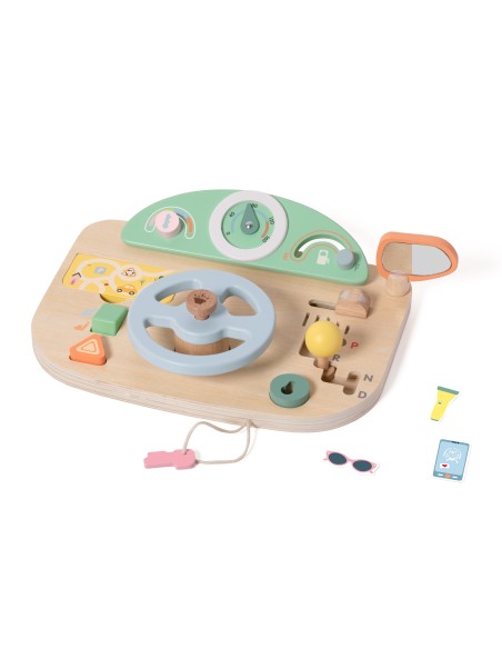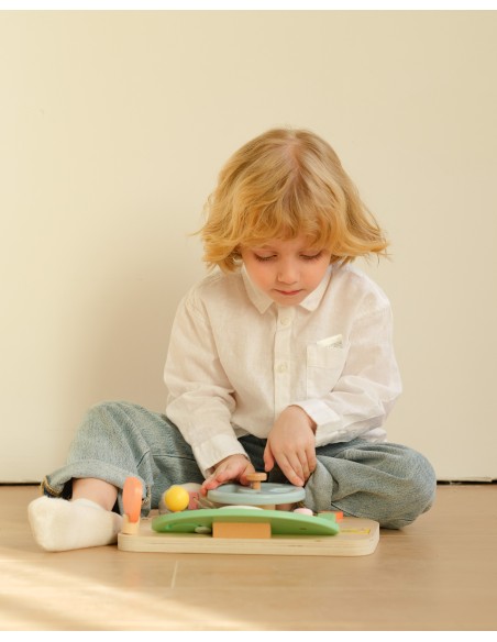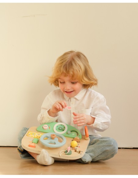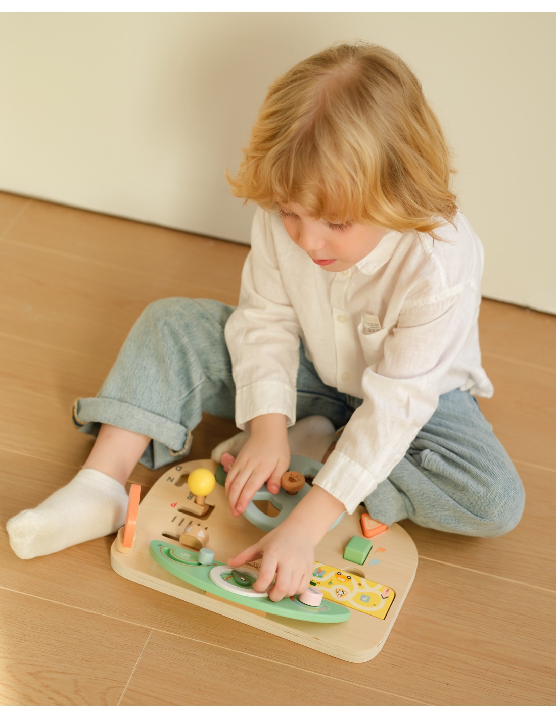 Çeşitli hareketli parçalar, çocukların ince motor becerilerini, el-göz koordinasyonunu ve problem çözme yetilerini oyun yoluyla geliştirmelerine yardımcı olur. Dayanıklı ahşap yapısı sayesinde uzun süreli kullanım için uygundur.