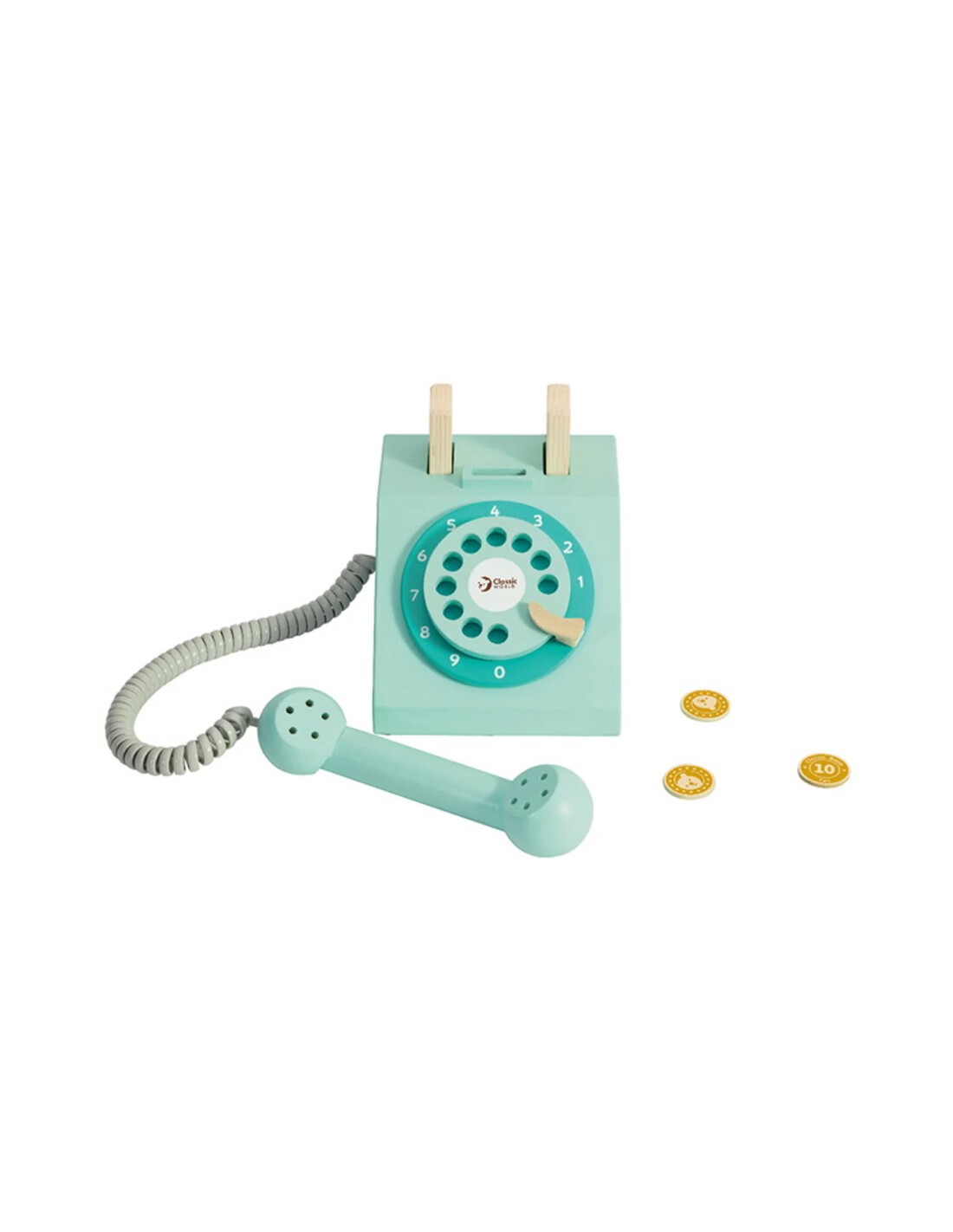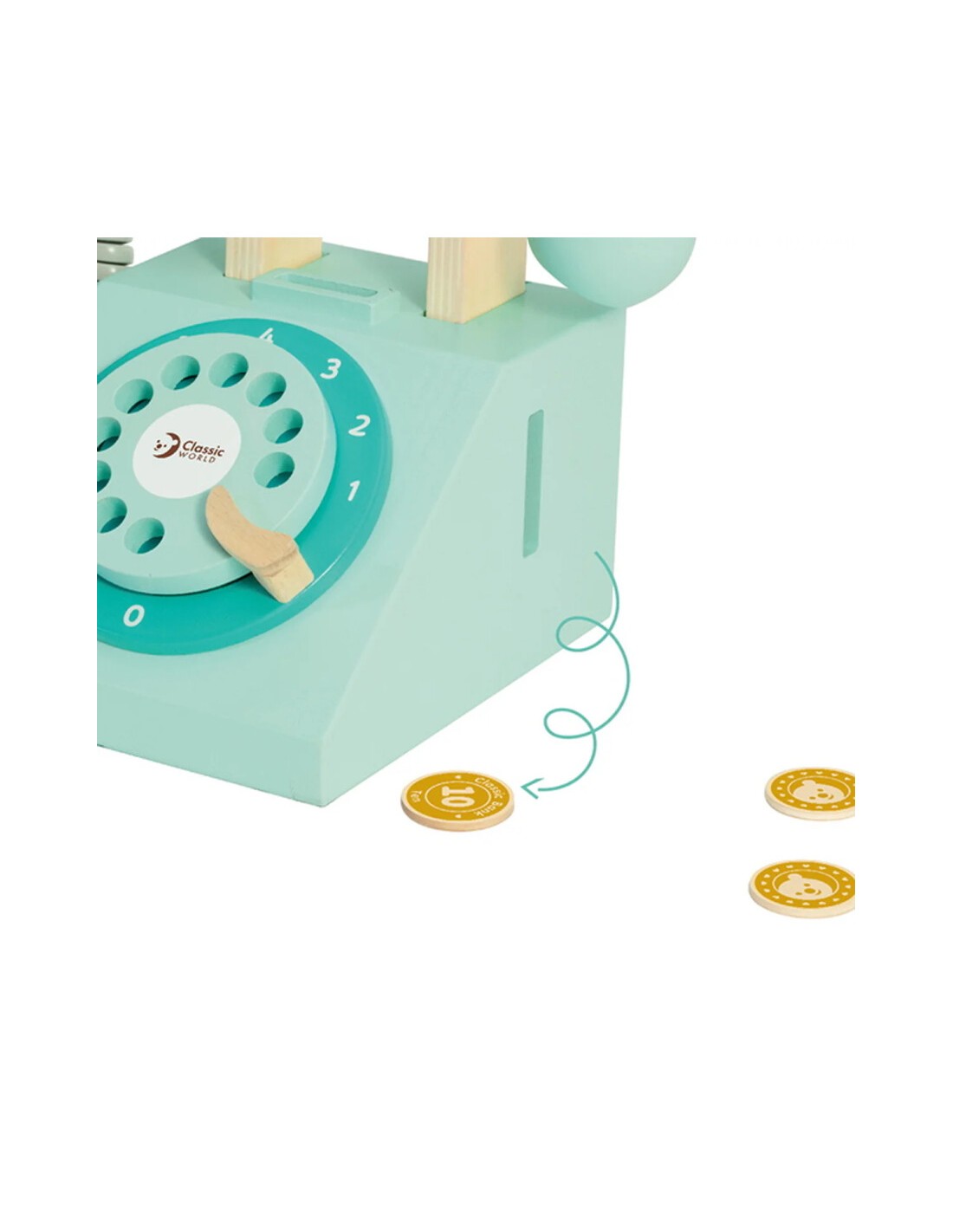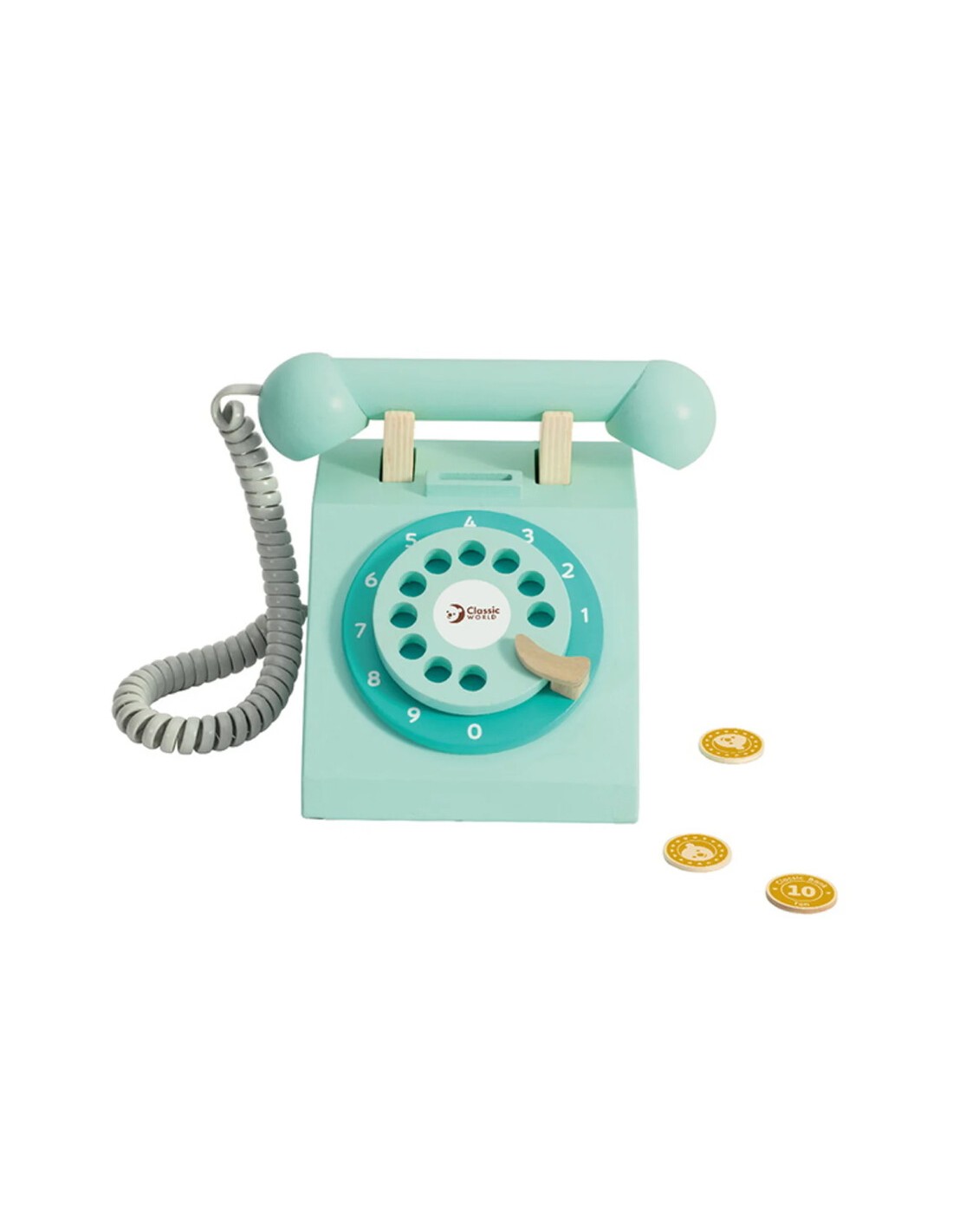 Classic World Ahşap Oyuncak Telefon, çocukların taklit ve iletişim becerilerini destekleyen eğlenceli bir ahşap oyuncaktır. Ahizeyi kaldırıp takarak oyun oynarken çocuklar hayal gücünü ve sosyal etkileşim becerilerini geliştirir.