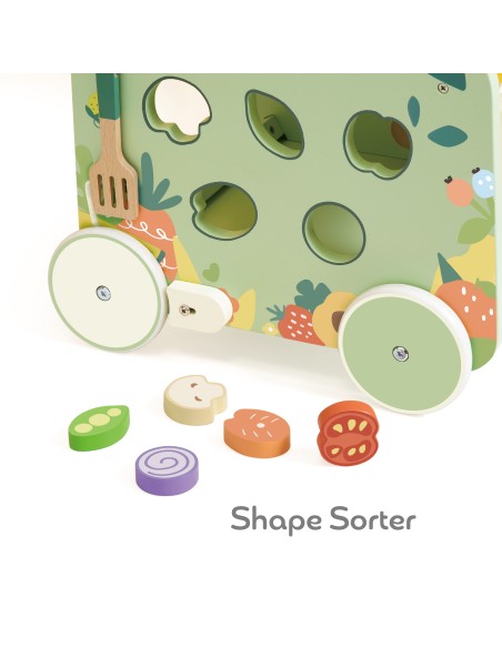 15 parçadan oluşan bu harika 2'si 1 arada çok fonksiyonlu mutfak temalı yürüme arkadaşı, ocak ve lavabo gibi birçok mutfak aksesuarı içeriyor. Bu sayede çocuklar hayali yemek yapma oyunları oynarken, dört tekerleği ile bu hareketli mutfağı bir yürüteç olarak da kullanılabilirler.