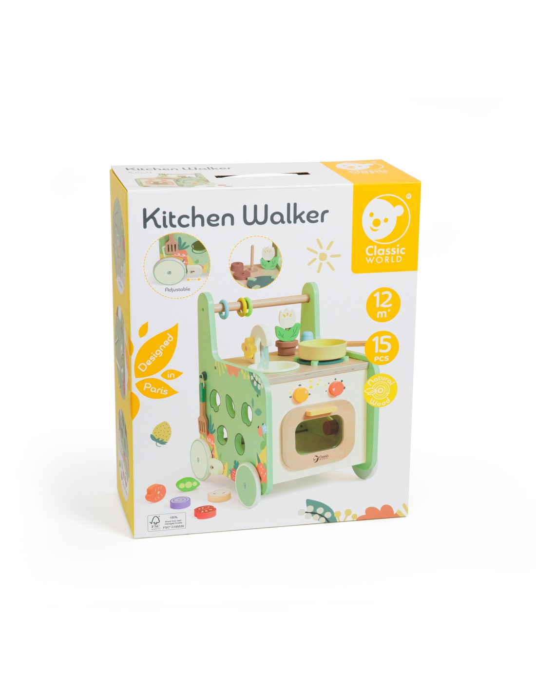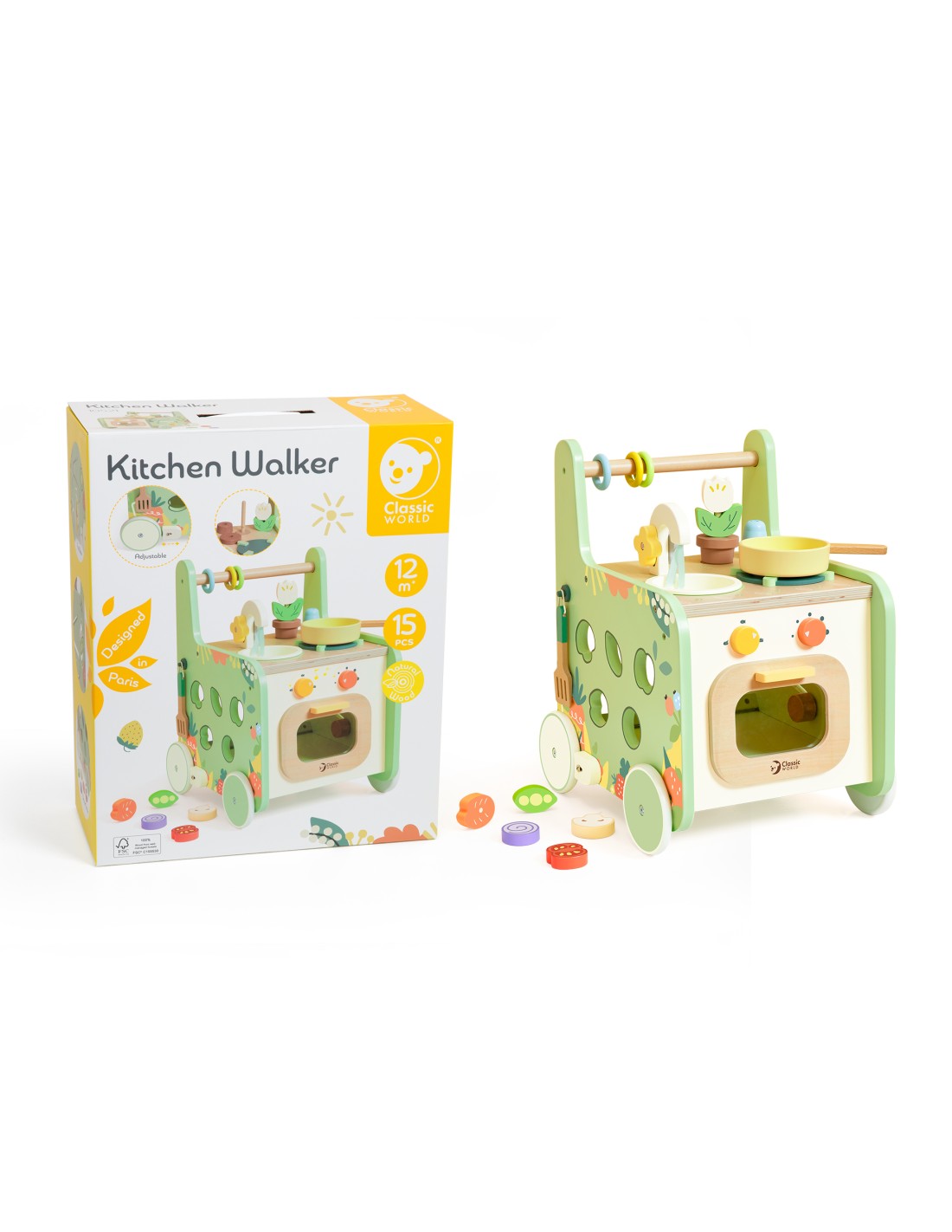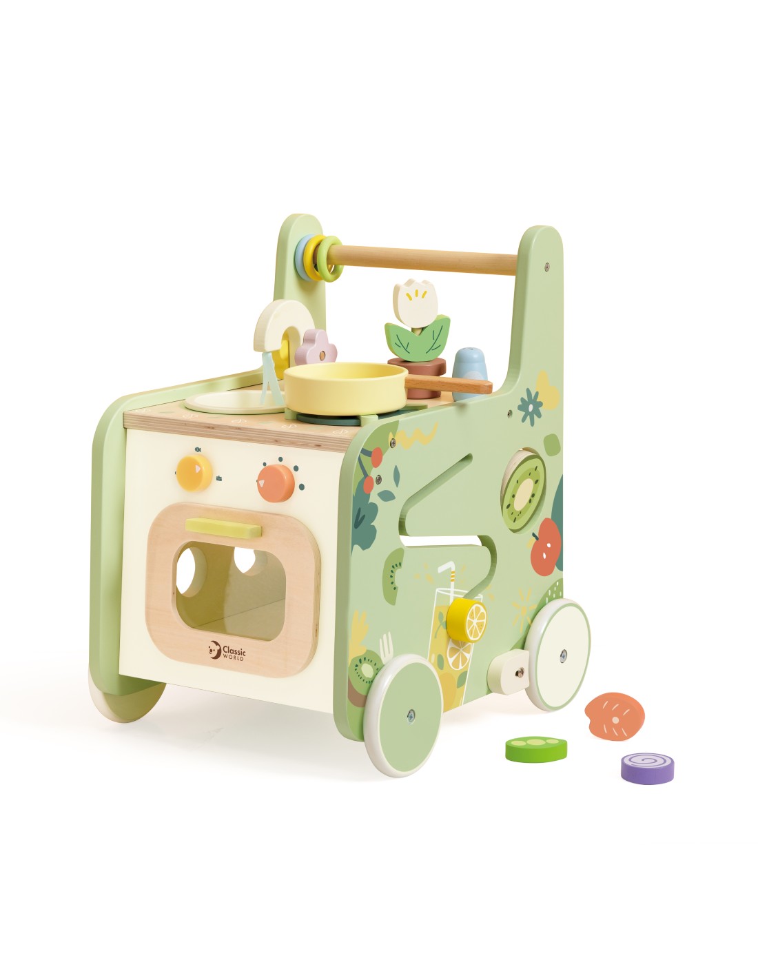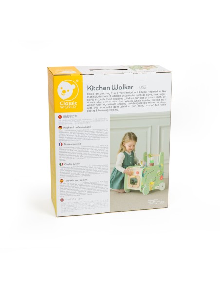 Döndürebilir parçaları, labirent oyunu, oyuncak mutfak gereçleri ile Classic World Ahşap Yürüme Arkadaşı, çocuklara hem hayali oyunlarında eşlik etmek hem de ilk adımlarını atarken onlara yardımcı olmak için ideal.