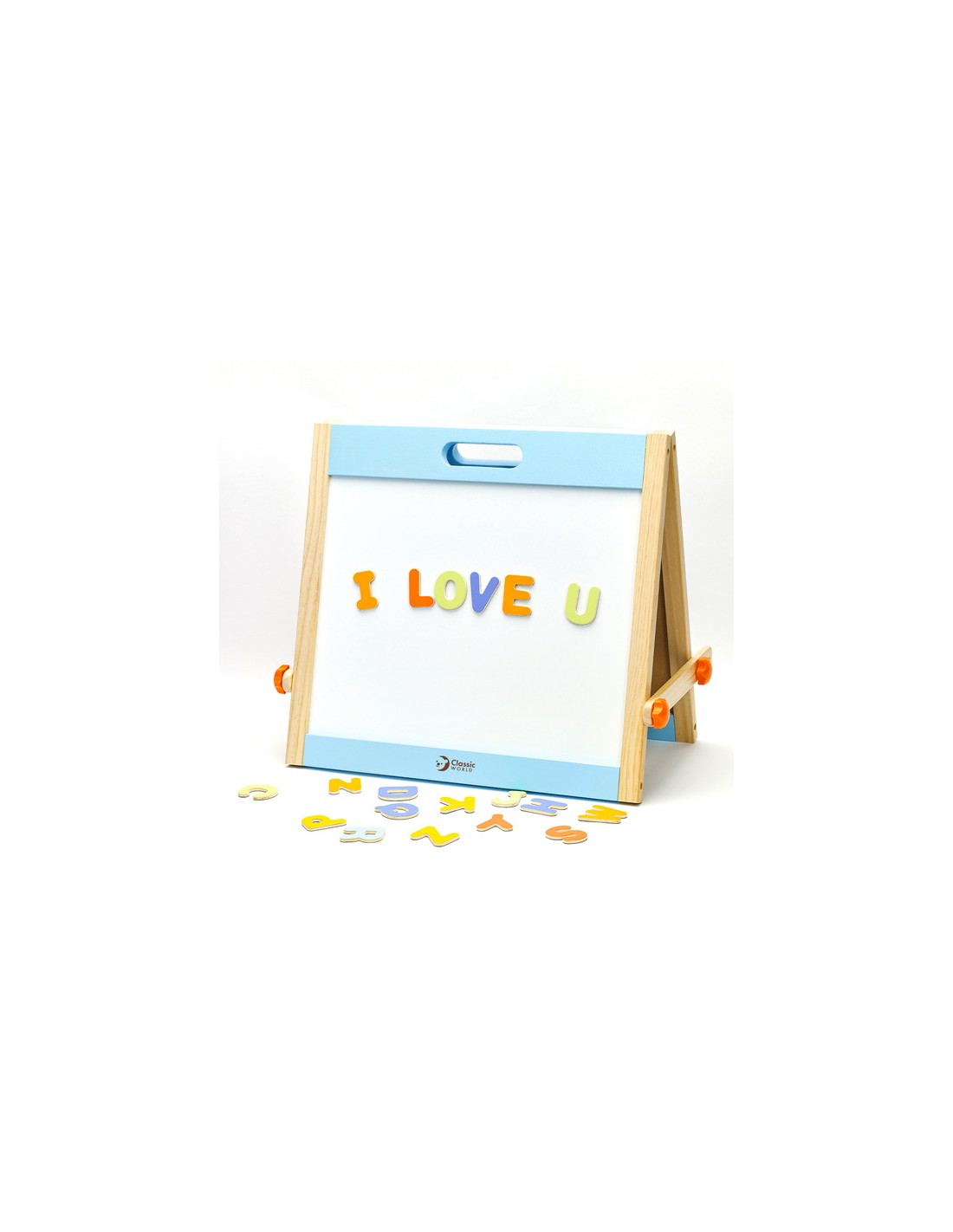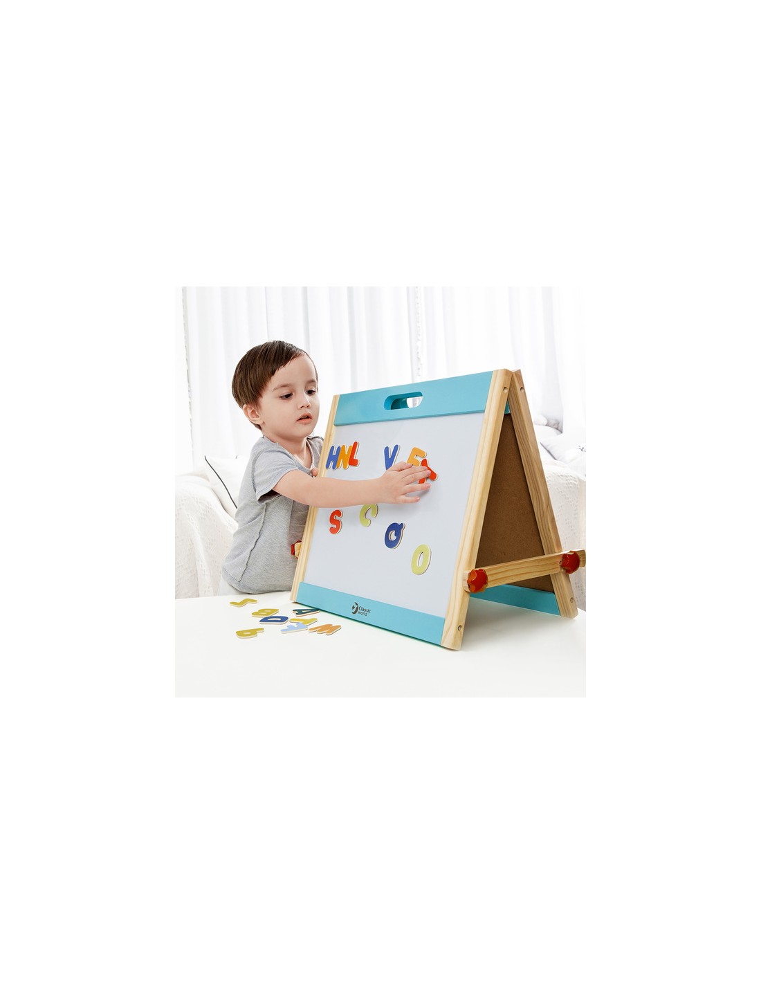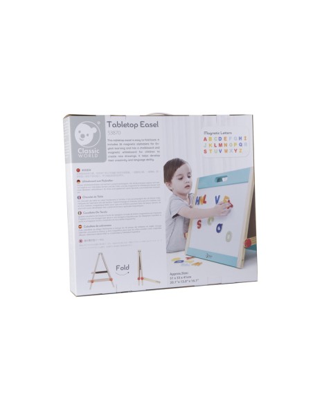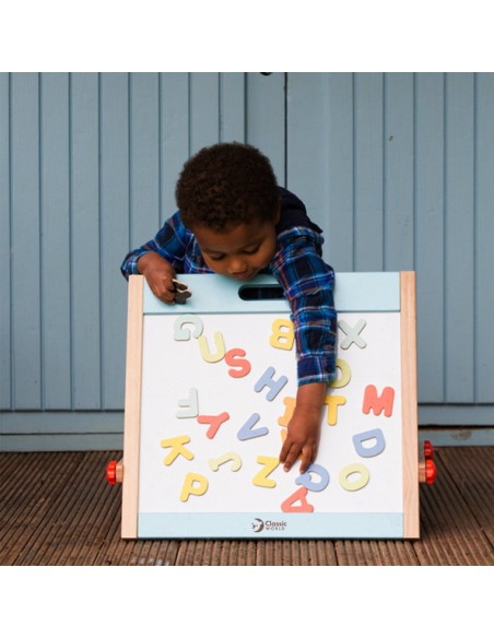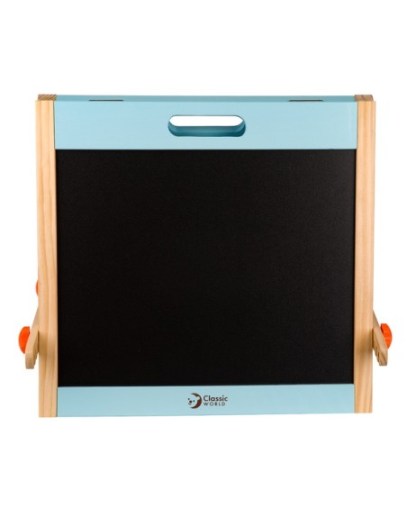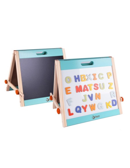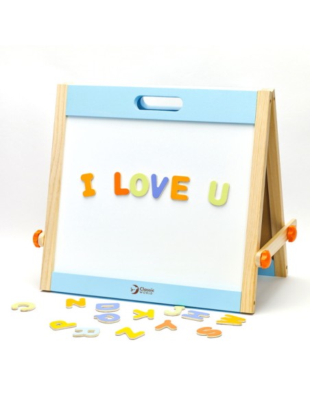 Classic World Ahşap Magnetli Yazı Tahtası, minik yaratıcı zihinler için hem eğlenceli hem eğitici bir deneyim sunuyor. Katlanabilir tasarımı sayesinde hızlıca açılıp oyun alanına dönüşür; biri yazı-çizim için kara tahta, diğeri ise mıknatıslı harf ve figürlerle dolu manyetik yüzey olarak kullanılır. Ahşap çerçevesi sağlam ve estetik bir görünüm sunar, oyunun yanı sıra çocuk odasına şık bir dokunuş katabilir.