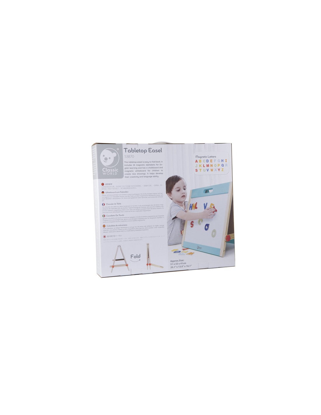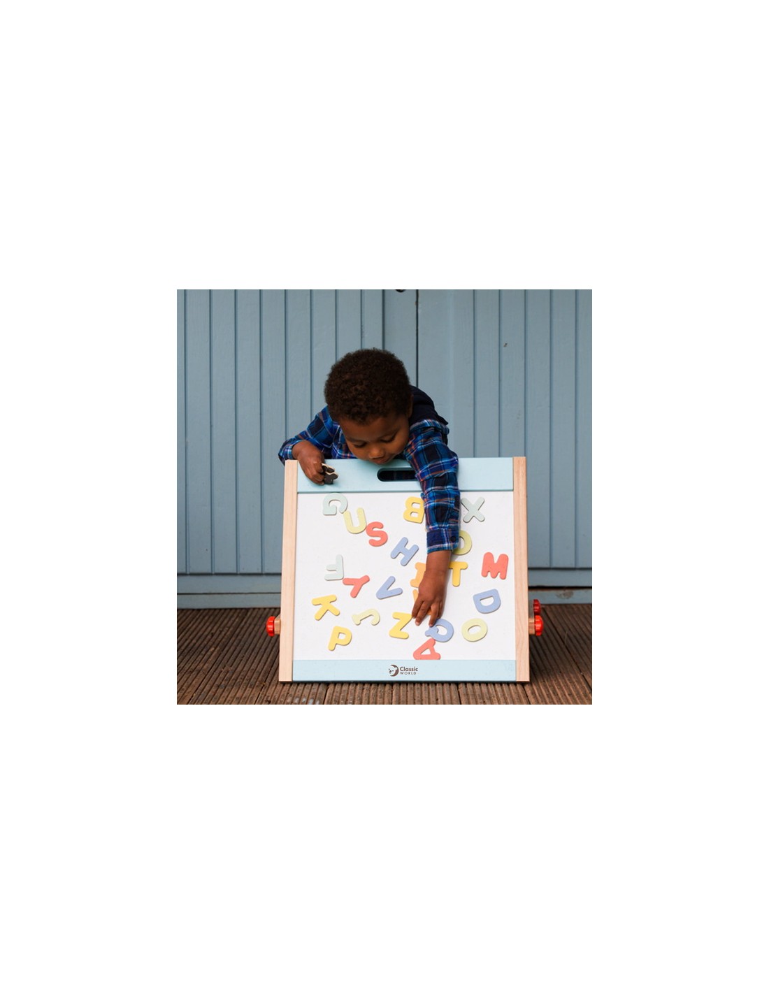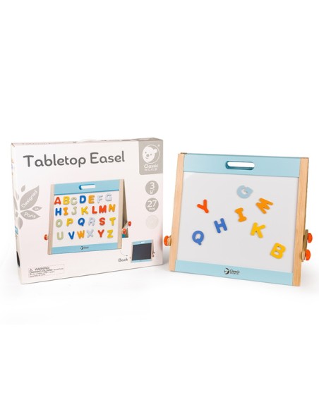 Classic World Ahşap Magnetli Yazı Tahtası, minik yaratıcı zihinler için hem eğlenceli hem eğitici bir deneyim sunuyor. Katlanabilir tasarımı sayesinde hızlıca açılıp oyun alanına dönüşür; biri yazı-çizim için kara tahta, diğeri ise mıknatıslı harf ve figürlerle dolu manyetik yüzey olarak kullanılır. Ahşap çerçevesi sağlam ve estetik bir görünüm sunar, oyunun yanı sıra çocuk odasına şık bir dokunuş katabilir.