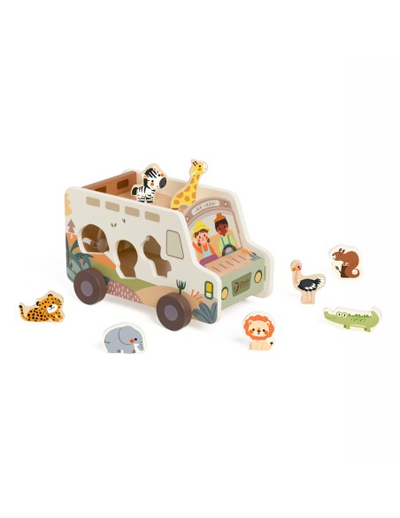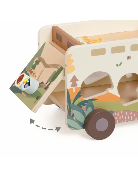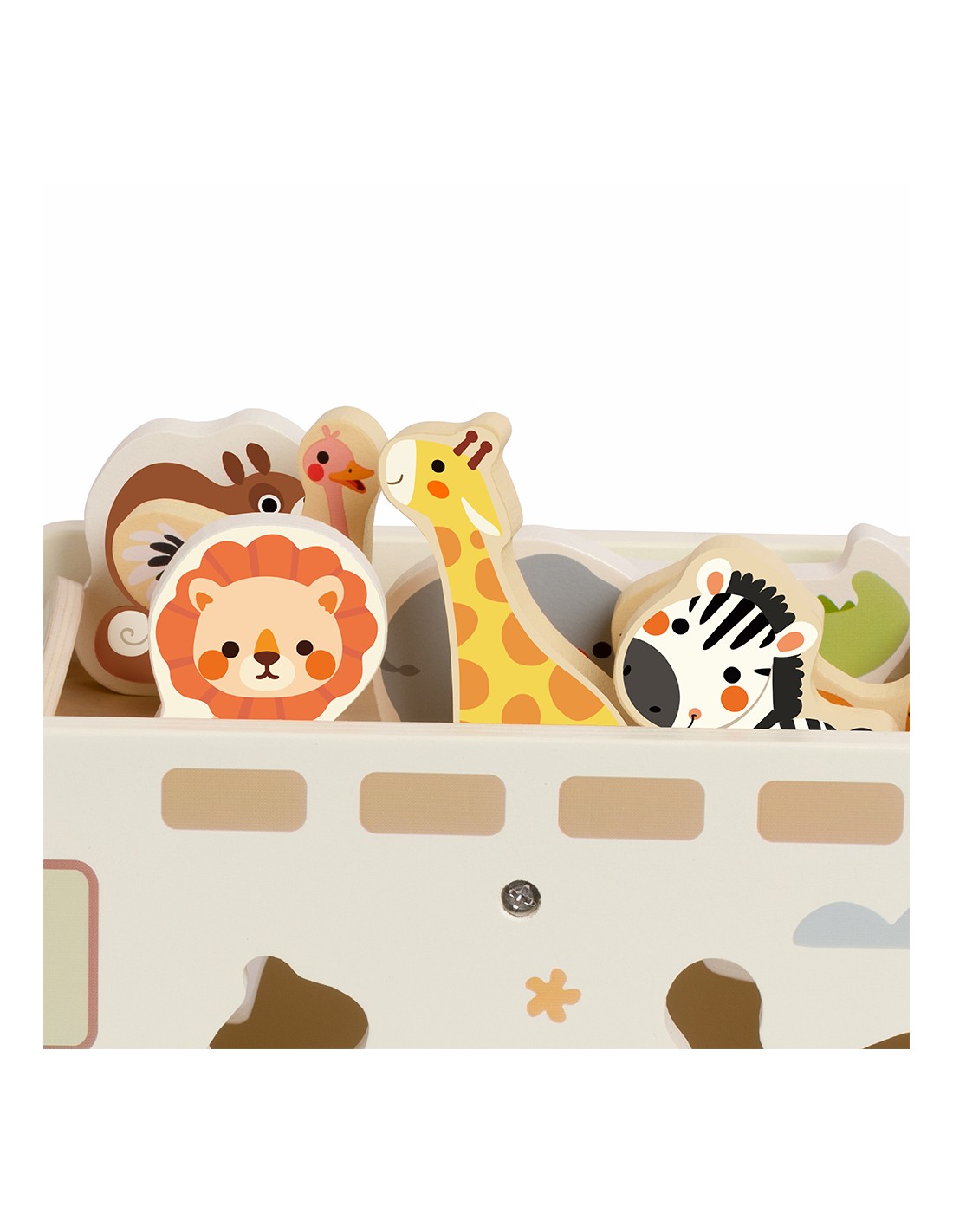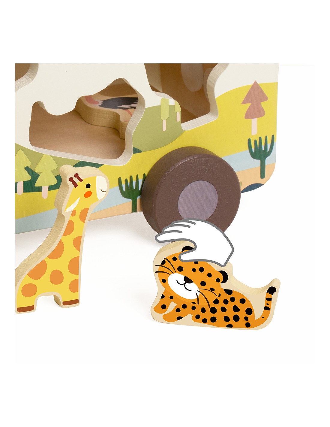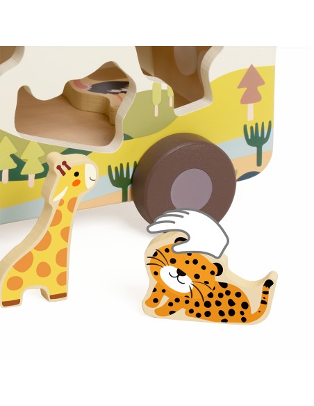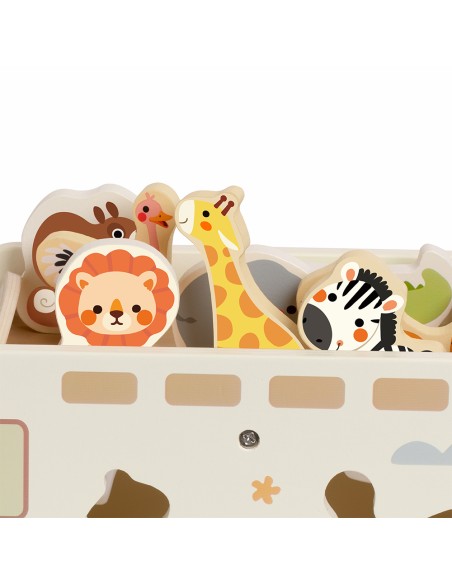 Çocuklar her bir şekli doğru boşluğa yerleştirirken aynı zamanda kaydırmalı parkurda hayvanları yönlendiriyor, kendi hikâyelerini yaratıyor ve oyunla öğrenmenin keyfini yaşıyor. FSC sertifikalı ahşaptan üretilen bu oyuncak, toksik olmayan renklerle boyanmış ve çocukların güvenle kullanabileceği şekilde tasarlanmıştır.