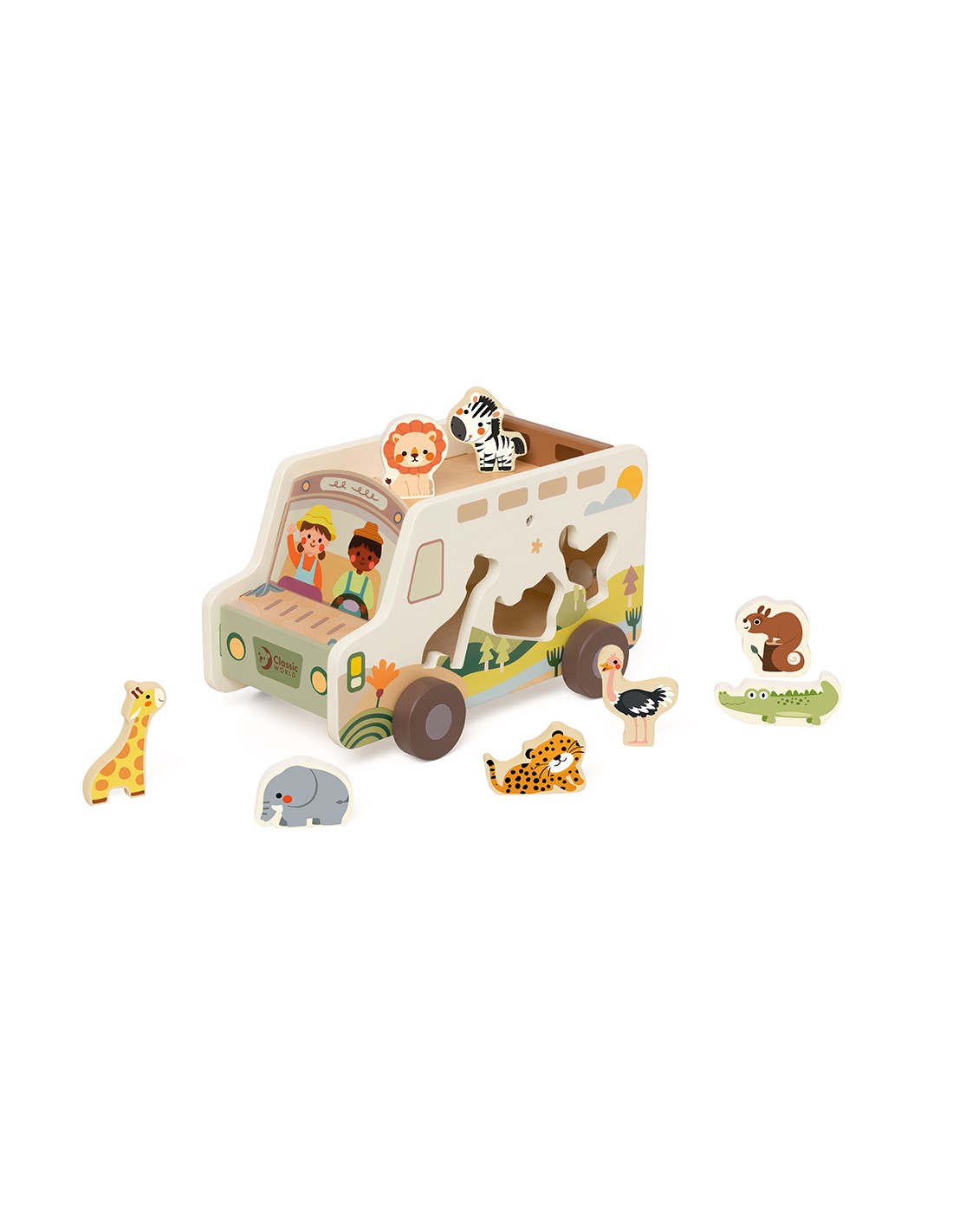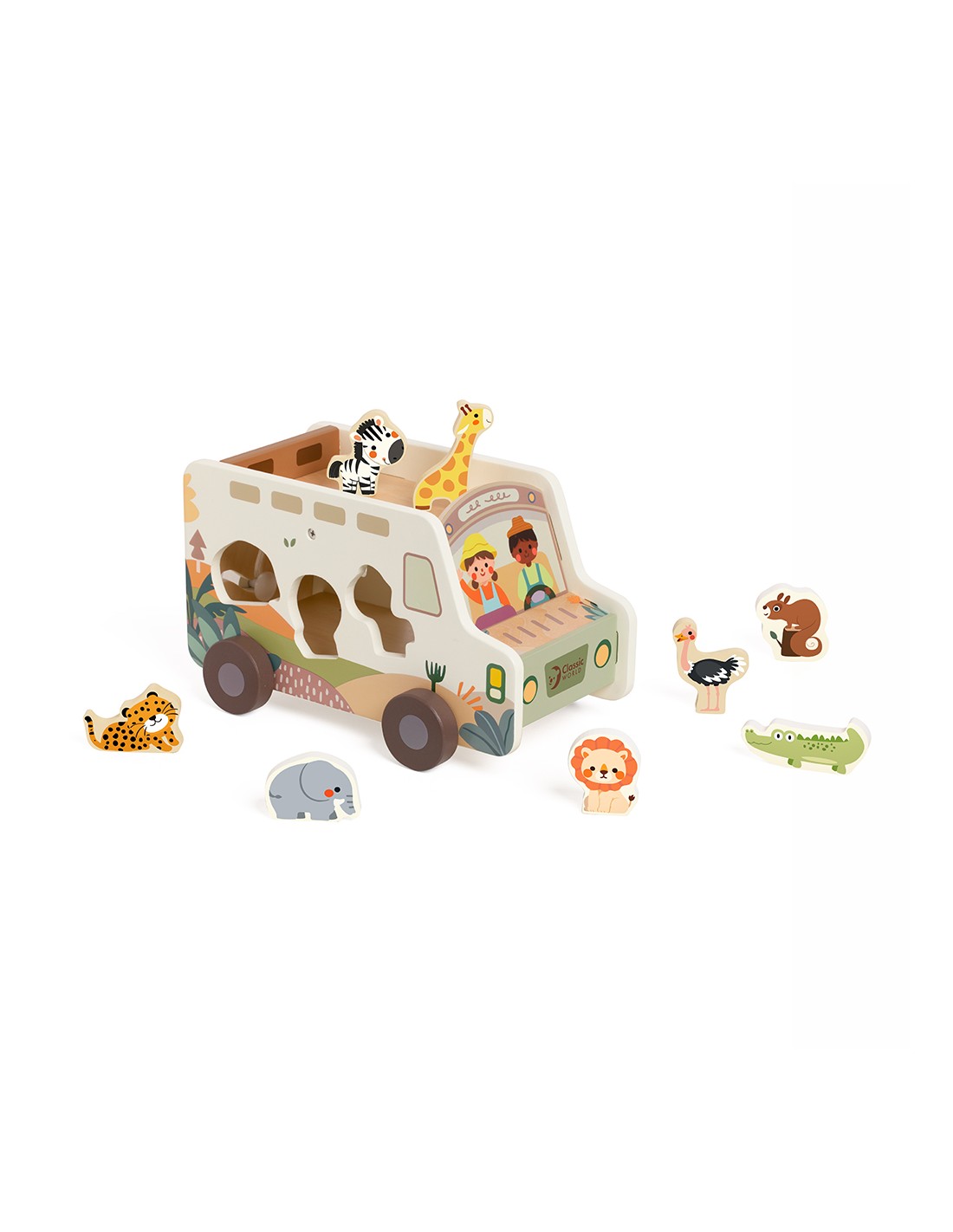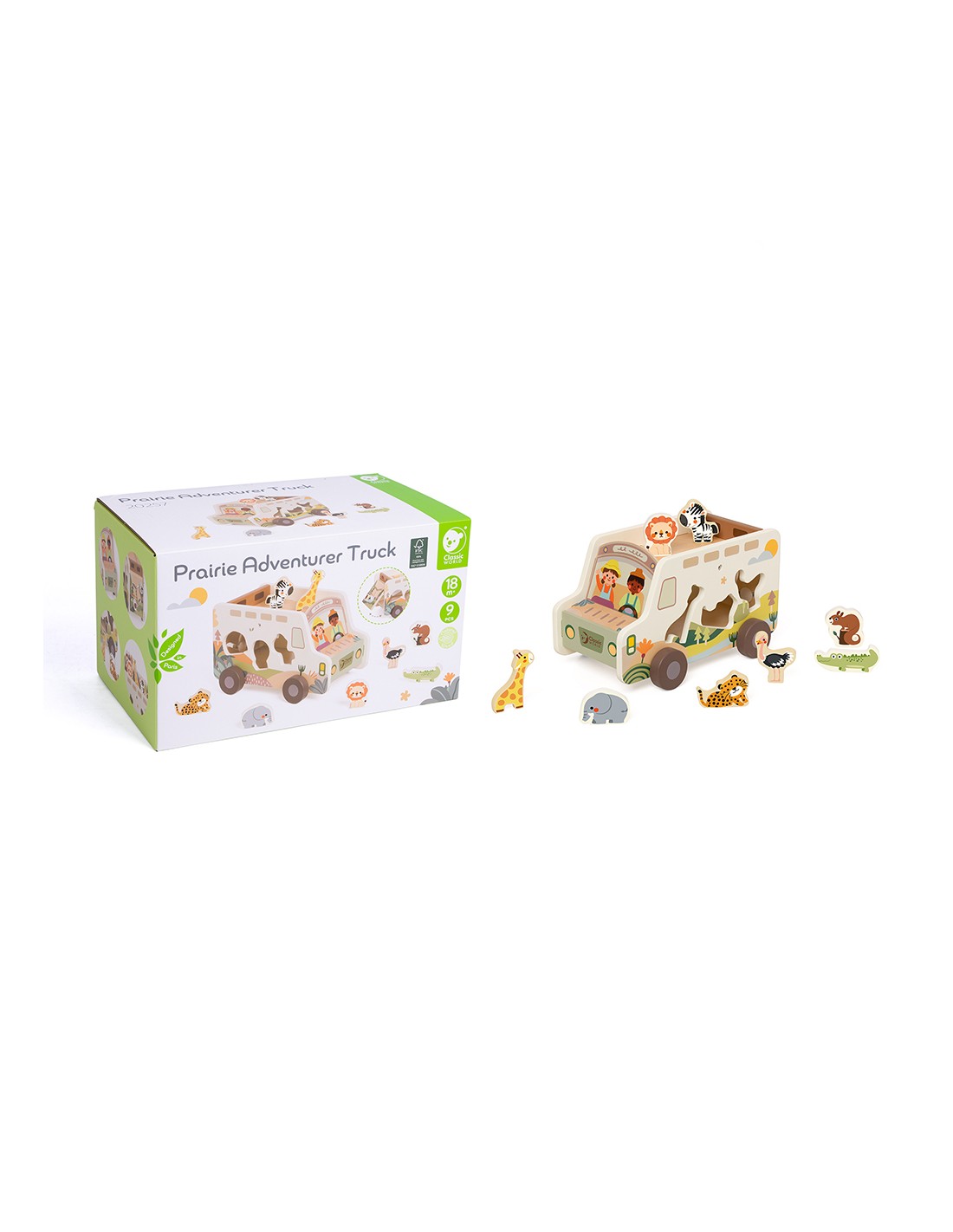 Classic World Ahşap Şekil Sınıflandırıcı - Truck ile minikler doğayla iç içe bir keşif yolculuğuna çıkıyor! Hayvan ve doğa temalı ahşap bloklarla donatılmış bu eğlenceli kamyon, çocukların şekil eşleştirme, el-göz koordinasyonu ve hayal gücünü geliştirmelerine yardımcı oluyor.