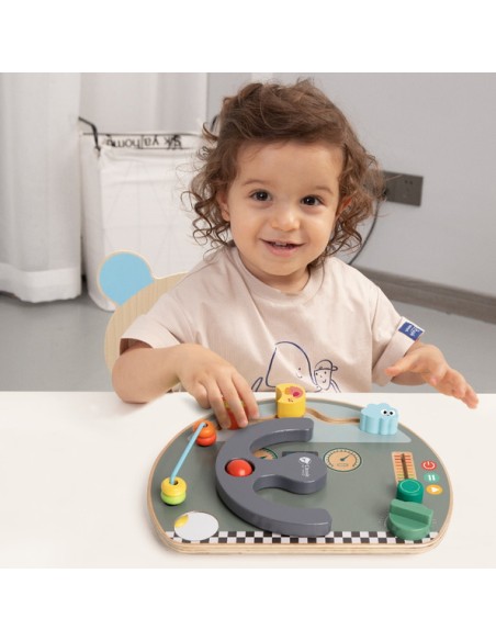 Classic World Ahşap Travel Oyun Tahtası – “Trafik” temalı bu çok yönlü oyuncak, miniklerin el-göz koordinasyonunu ve ince motor becerilerini eğlenceli bir şekilde geliştirmesine yardımcı oluyor. 12 ay ve üzeri çocuklar için tasarlanmış olan bu activity board; kontrol düğmeleri, sürgüler, döner parçalar ve direksiyon gibi detaylarla dolu, yolculuklar ya da evde oyun zamanlarında ideal bir tercih.