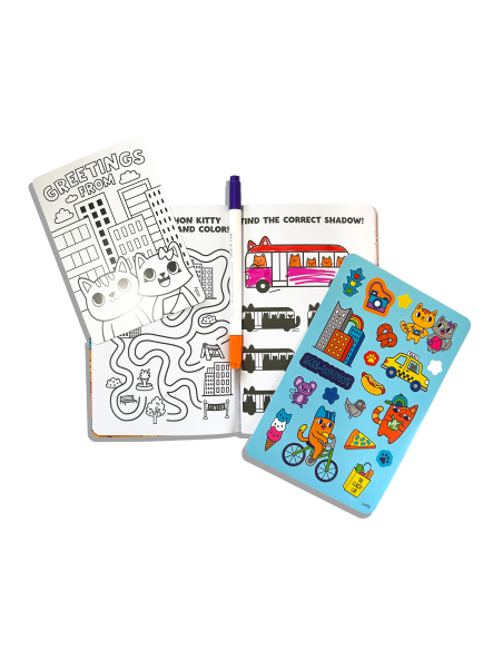 Ooly Let’s Go! Taşınabilir Aktivite Boyama Seti - Kitty In The City ile çocukların yaratıcılığını her an, her yerde destekleyin! Şehirde macera yaşayan sevimli kediler temasıyla hazırlanan bu eğlenceli set, boyama sayfalarından bulmacalara, kelime oyunlarından sayı ile boyamaya kadar birçok aktiviteyi bir araya getirir. Ooly Let’s Go! Taşınabilir Aktivite Boyama Seti - Kitty In The City, hem eğlenceli hem öğretici içeriğiyle çocukların dikkatini çekerken ekranlardan uzak, keyifli vakit geçirmelerini sağlar. Seyahatlerde, restoranlarda ya da evde sessiz oyun zamanları için mükemmel bir çözümdür.