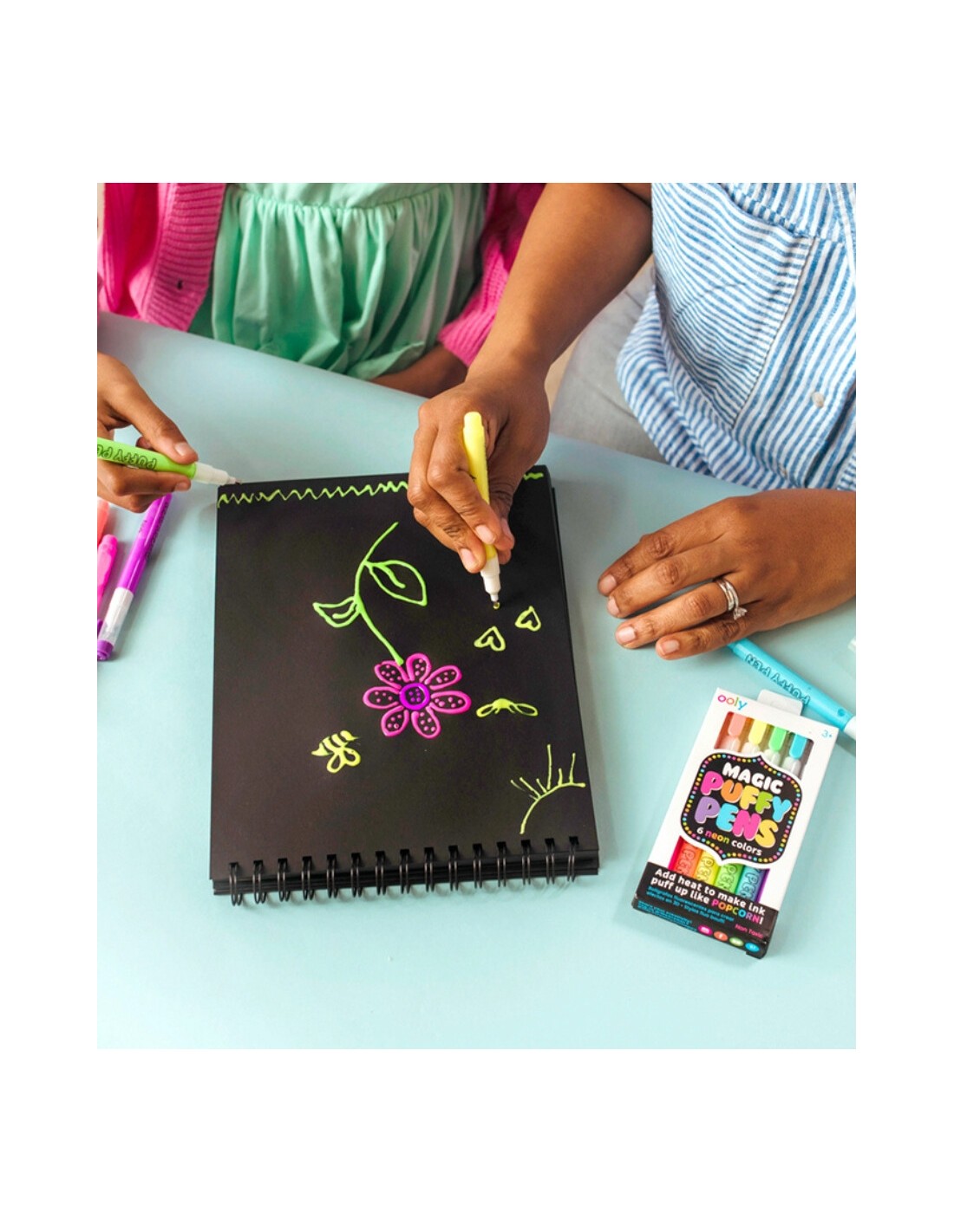 Bu renkli neon kalemler, sıradan boya kalemlerinden oldukça farklı! Onların neredeyse sihirli bir özelliği var. İçlerindeki özel mürekkep sayesinde sadece 60 saniyede harika sanat eserleri ortaya çıkarabilirsiniz. Magic Puffy Pens ile çizim yapın, kurumaya bırakın ve saç kurutma makinesi yardımı ile çiziminize biraz ısı tutun. Sonuç mu? İnanılmaz bir 3D sanat eseri elde edin. Magic Puffy Pens ile tebrik kartlarını kişiselleştirebilir, renklendirmenizi daha da büyülü hale getirebilirsiniz.