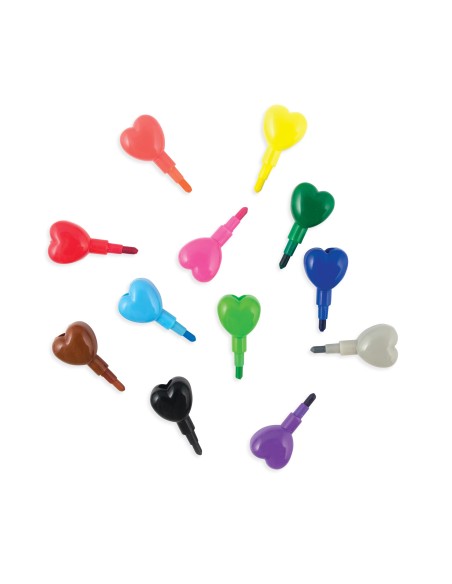 Tüm boya kalemlerini kullanmadığınız zamanlarda bir arada tutabilirsiniz! 12 farklı renkten oluşan istiflenebilir mum boya setindeki kalp figürlü parçaları dilediğiniz gibi karıştırıp yeniden dizebilirsiniz. Boyaların ince kısımları, çizimlerinizdeki ayrıntıları renklendirmenize olanak sağlar.