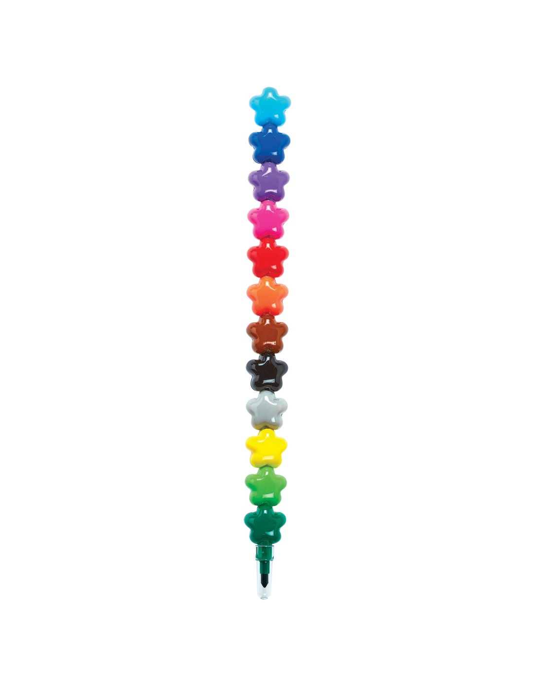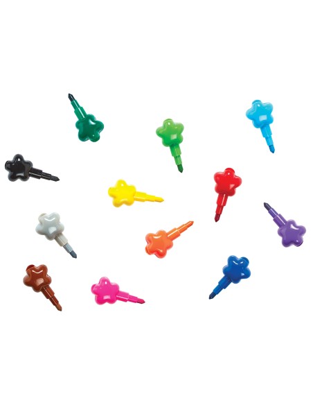 Yıldız şeklindeki istiflenebilir boya kalemleri ile renklendirme yapmak çok kolay ve eğlenceli. İstiflenme özelliği ile kullanmadığınız zamanlarda tüm boya kalemlerini bir arada tutabilirsiniz. 12 renkli bir mum boya setindeki tüm renkleri dilediğiniz gibi dizebilirsiniz. Ayrıca her mum boyanın ince ucu sayesinde detaylı boyamalar da yapabilirsiniz.