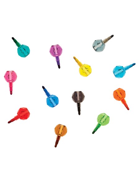Tüm boya kalemlerini kullanmadığınız zamanlarda bir arada tutabilirsiniz! 12 farklı renkten oluşan istiflenebilir mum boya setindeki yarı saydam mücevher şeklindeki parçaları dilediğiniz gibi karıştırıp yeniden dizebilirsiniz. Boyaların ince kısımları, çizimlerinizdeki ayrıntıları renklendirmenize olanak sağlar.