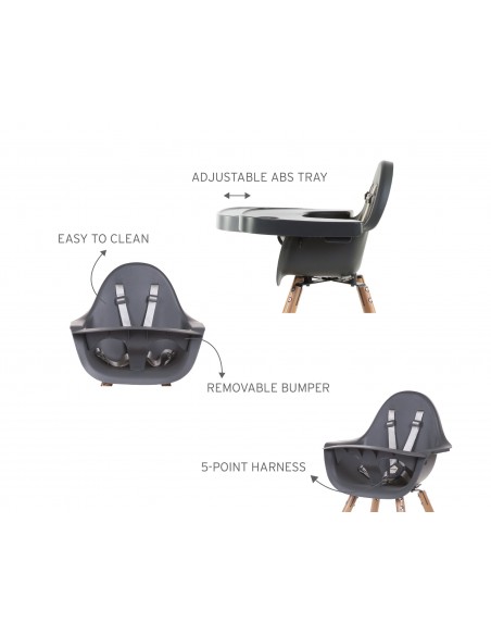 Childhome - Evolu Mama Sandalyesi Naturel / Antrasit + Antrasit Ön Tepsi (Silikon Mat Hediyeli)