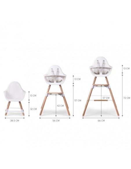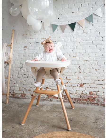 Childhome - Evolu Mama Sandalyesi Natural / Beyaz + Beyaz Ön Tepsi (Silikon Mat Hediyeli)