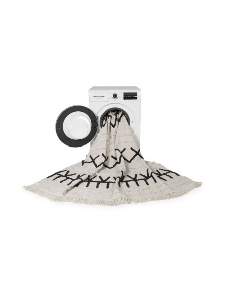 Lorena Canals'ın doğal ve non-toxic el yapımı boyalar kullandığını hatırlatmak isteriz. Halınız yıkamadan sonra rengini kaybetmeyecektir çünkü üretim sürecinde tüm içerikler sabitlenir. Ancak el yapımı ve narin bir ürün olduğu için, her doğal pamuk tekstil ürünü gibi özel bakıma gerek duyar. Kullanma talimatına uygun yıkama ve bakım yapılmadığı hallerde halılarımız kalite kapsamı dışındadır.
