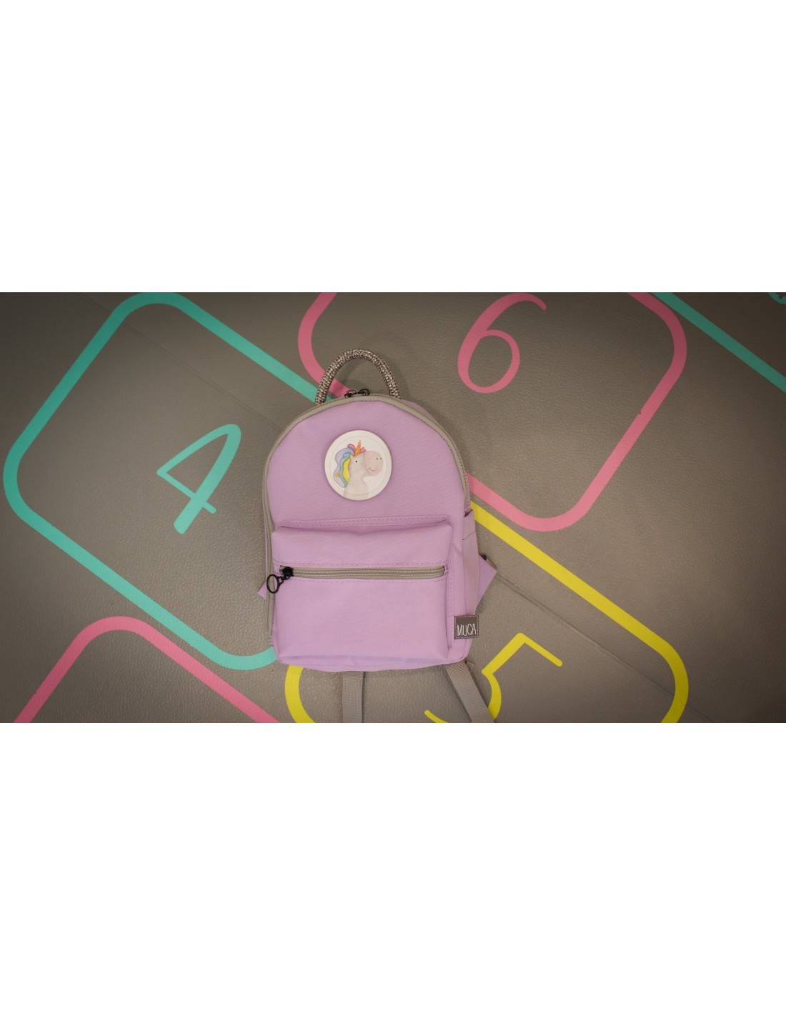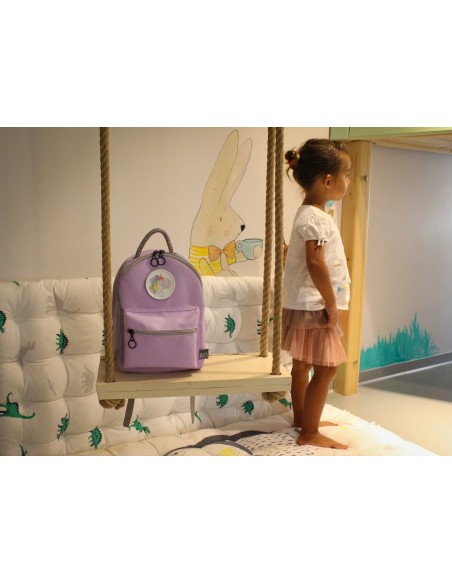 Dünya tatlıları için rüya gibi lila Mini Gogi. Şık bir tasarıma sahip fonksiyonel mini sırt çantası Mini Gogi'nin, su mataraları için bir adet yan cebi ve önde fermuarlı geniş cebi bulunur. Yuva çocuklarının ihtiyaçlarına göre tasarlanmıştır.