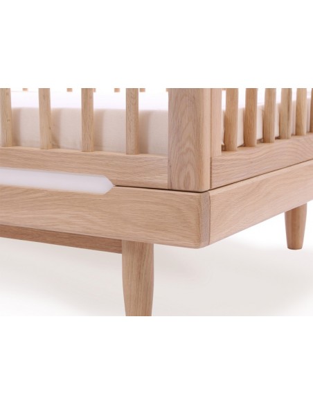 Pure Serisine ait bu zarif karyola, masif Amerikan Meşe Ağacı’ndan üretilmiştir ve çocuğunuzun gelişimine stil ve sadelik katar. Evolutive Dönüşüm Kiti sayesinde, karyolayı bir Junior yatağa çevirerek, mobilyanıza ikinci bir hayat sunar…