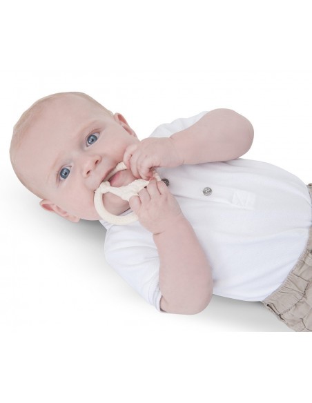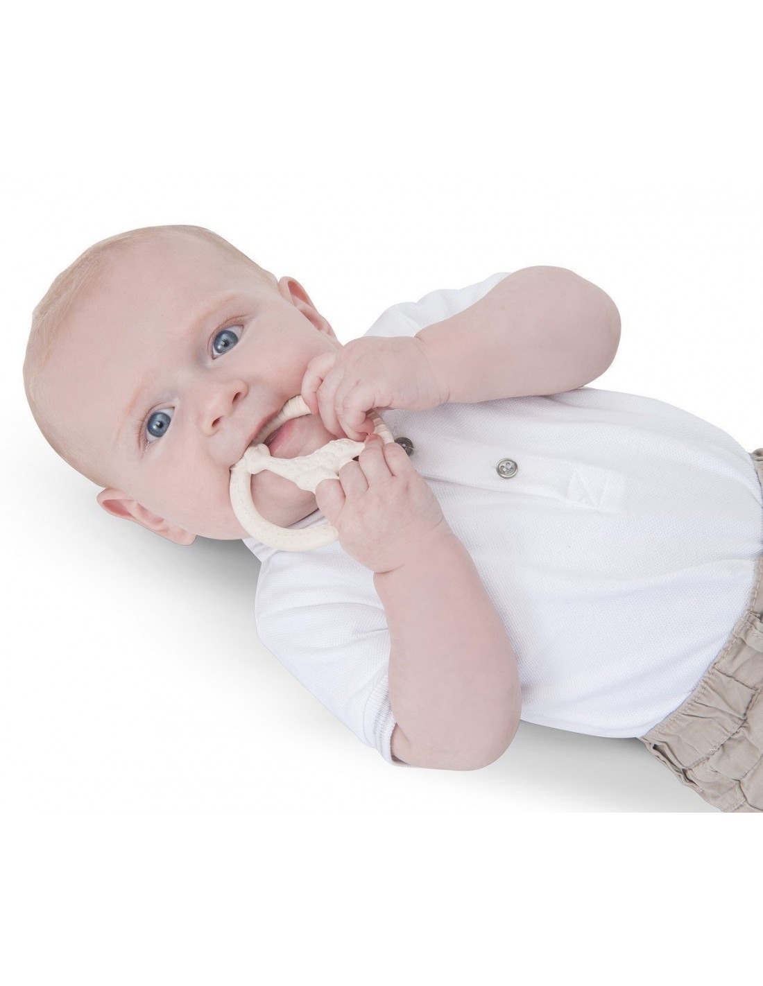 Diş kaşıyıcı çemberin dış kısımlarındaki küçük noktaları ve çizgileri, diş çıkarma sırasındaki bebeğinizin acısını giderirken, Bebeğin ağrısına etkili bir şekilde masaj yapar.