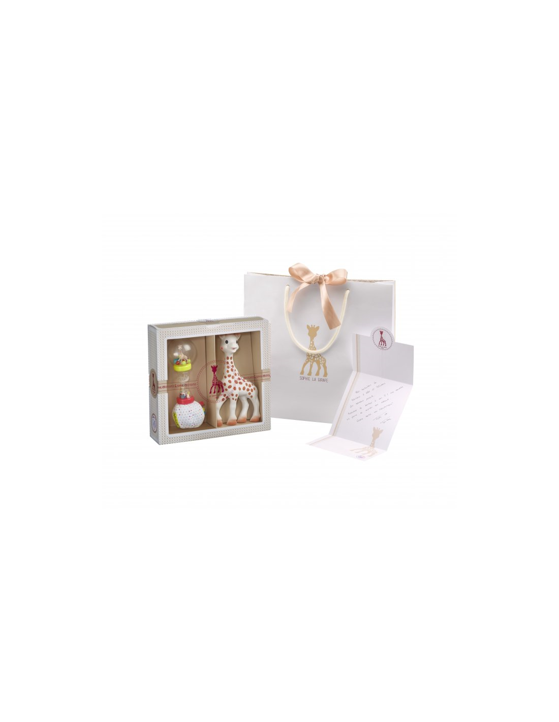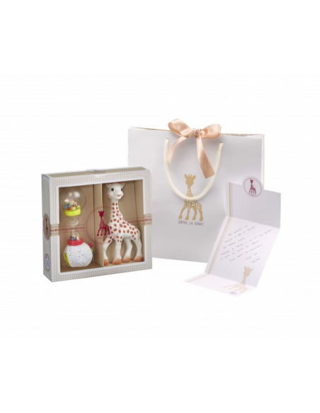 Bu büyüleyici Sophiesticated hediye seti bir adet Sophie La Girafe® ve çok sevilen marakas çıngırak içerir.