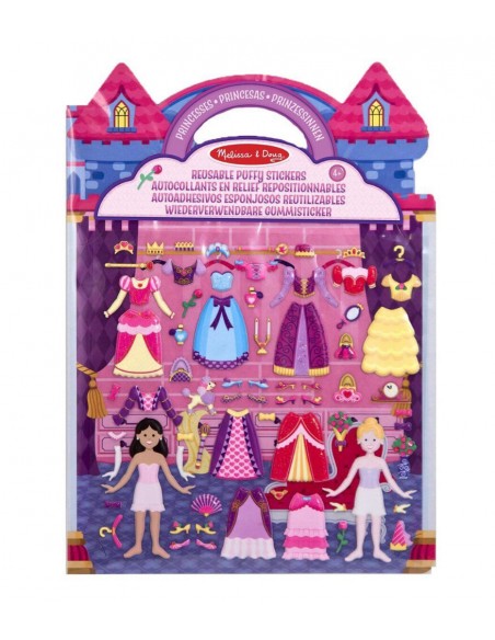 Paket içindeki 4 değişik oyun sahnesinin üzerinde prensesler, elbiseler, ayakkabılar, mücevherler, taçlar, vb. 67 adet tekrar tekrar kullanılabilen kabartmalı çıkartmalar ile çocuklar yaratıcılıklarını gösterecekler ve prensesleri giydirerek iyi vakit geçirecekler.Tekrar kullanılabilen çıkartmayı yerinden çıkartın, dilediğniz oyun sahnesine yerleştirin, prensesleri giydirin, ve hayalinizden bir hikaye anlatın! İnce motor becerileri, eı-göz koordinasyonu, yaratıcılık ve ifade becerilerini geliştirir.