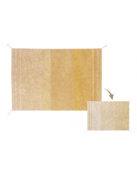 Halı boyunca yumuşak bir şekilde değişen renk paletleriyle oynayan çift taraflı halı..