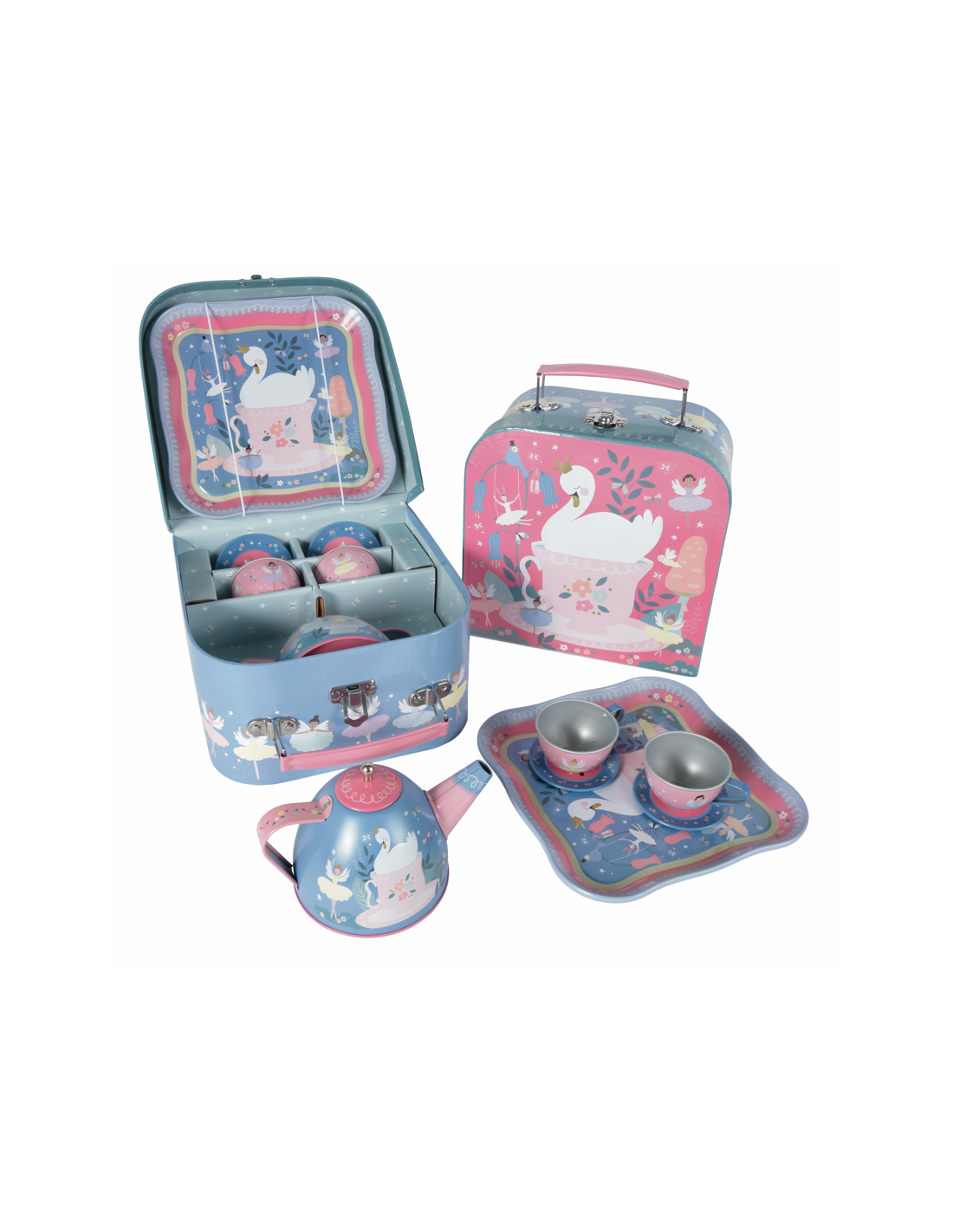 Floss & Rock Enchanted çay setimizde ışıltılı renklendirilmiş bir kutunun üzerinde balerinler, kuğular ve orman arkadaşları bulunmaktadır. Floss & Rock Çay Seti kutusunun içindeyse bir demlik, iki fincan, iki fincan tabağı ve bir tepsi bulacaksınız. Çay partisindeki misafirlere servis yapmak için harika değil mi? Floss & Rock'ın özenle tasarladığı çay seti küçüklerimizin hayal gücünü geliştirirken aynı zamanda arkadaşlarıyla da oynayabileceği muhteşem bir hediye olacaktır. Enchanted tasarımlı çay setinin güzel kutusunun bir de taşıma kulpu bulunur, böylece istediği her yere götürebilir.