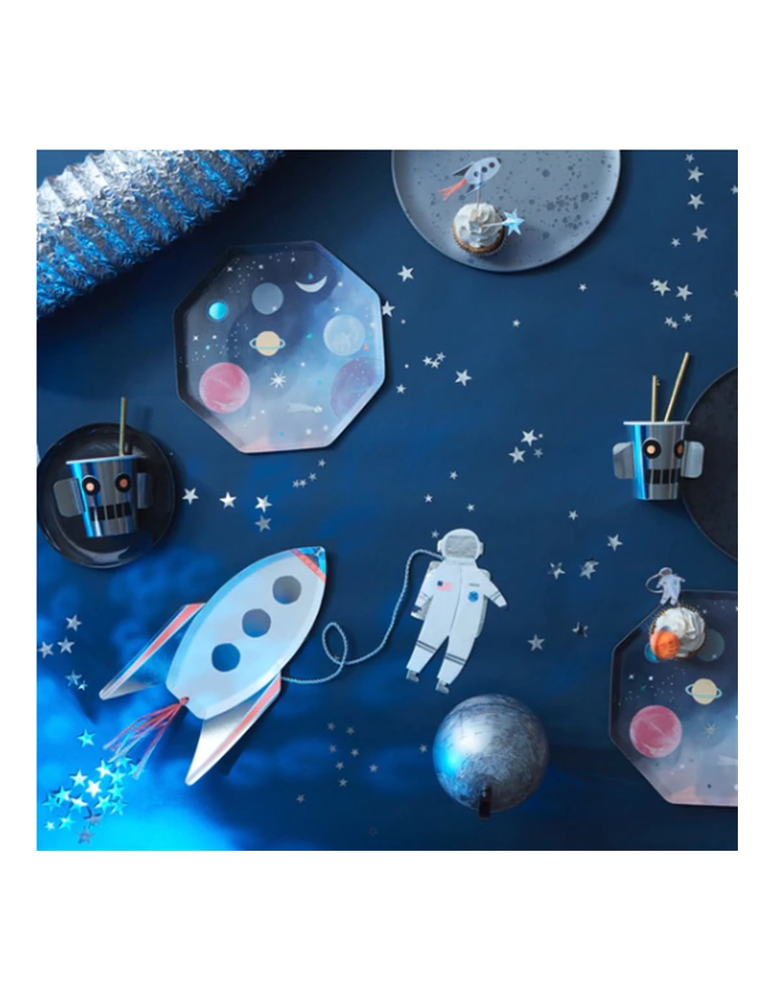 Parlak mavi folyo ve gümüş holografik folyo detaylar