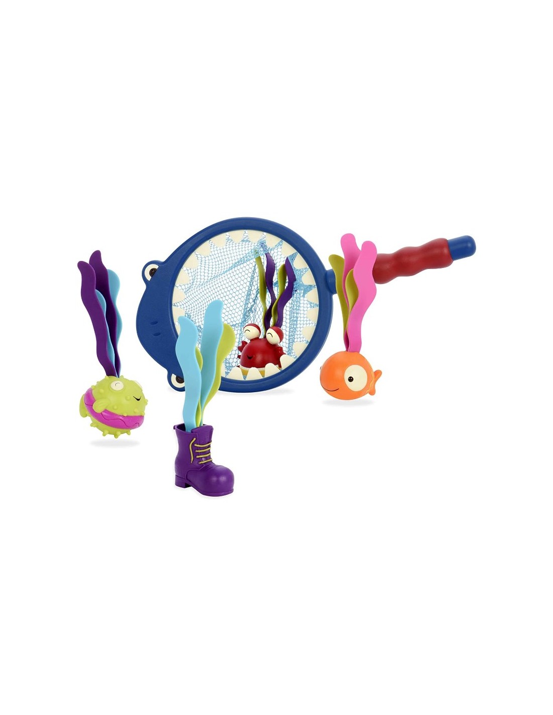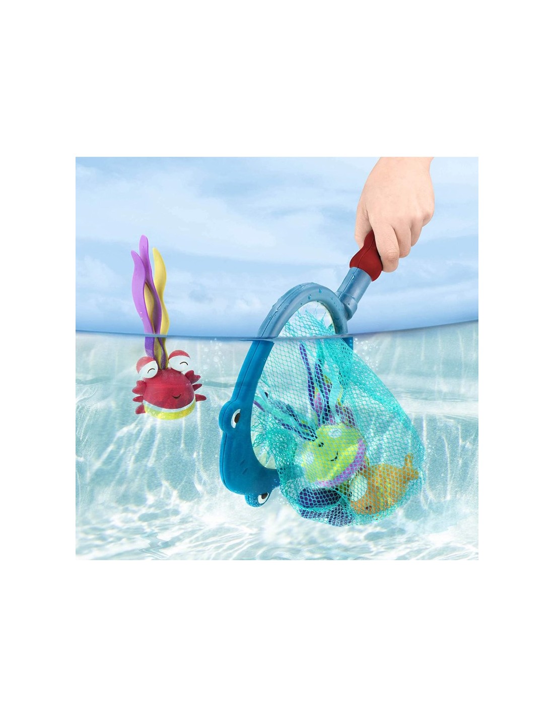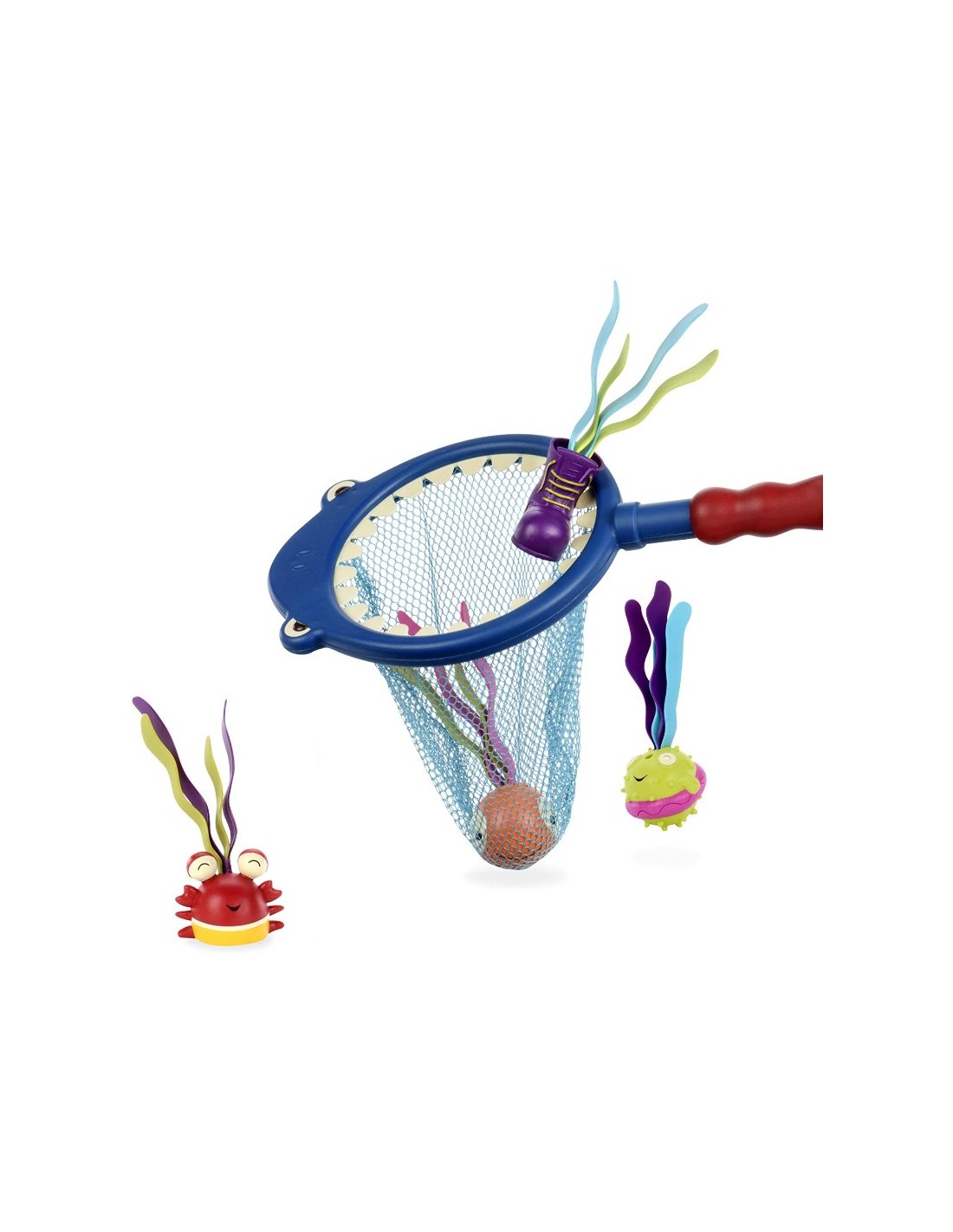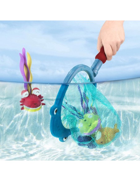 Köpek balığı şeklindeki ağın kenarlarında eğlenceli dişler vardır ve gözler her zaman küçük su altı hazinelerini arar.