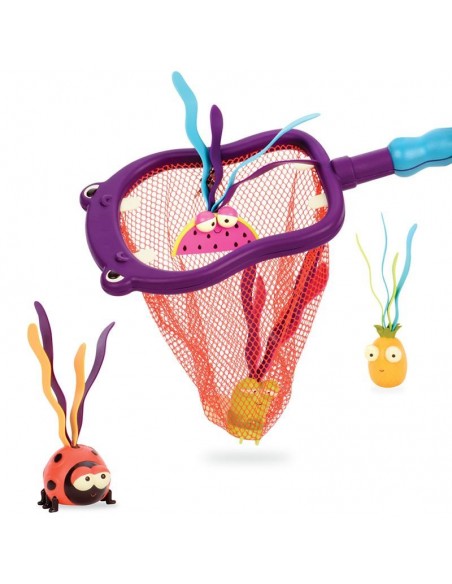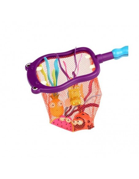 Köpek balığı şeklindeki ağın kenarlarında eğlenceli dişler vardır ve gözler her zaman küçük su altı hazinelerini arar.
